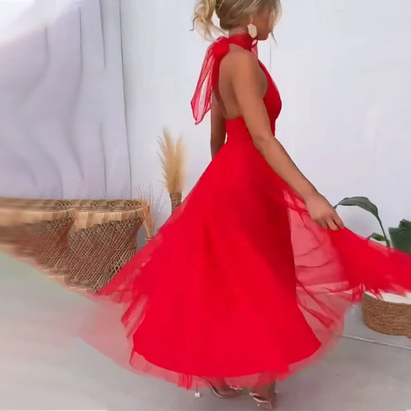 This spring dress is made from lightweight mesh to keep you warm on your beach holiday. The solid colour design is simple and elegant without unnecessary fancy elements, making you look fresher and more natural. At the same time, the collage and splicing techniques make the overall visual effect more colourful and the stand-up collar design emphasises the neckline. The sleeves are sleeveless so you can enjoy the sun and breeze unhindered.
