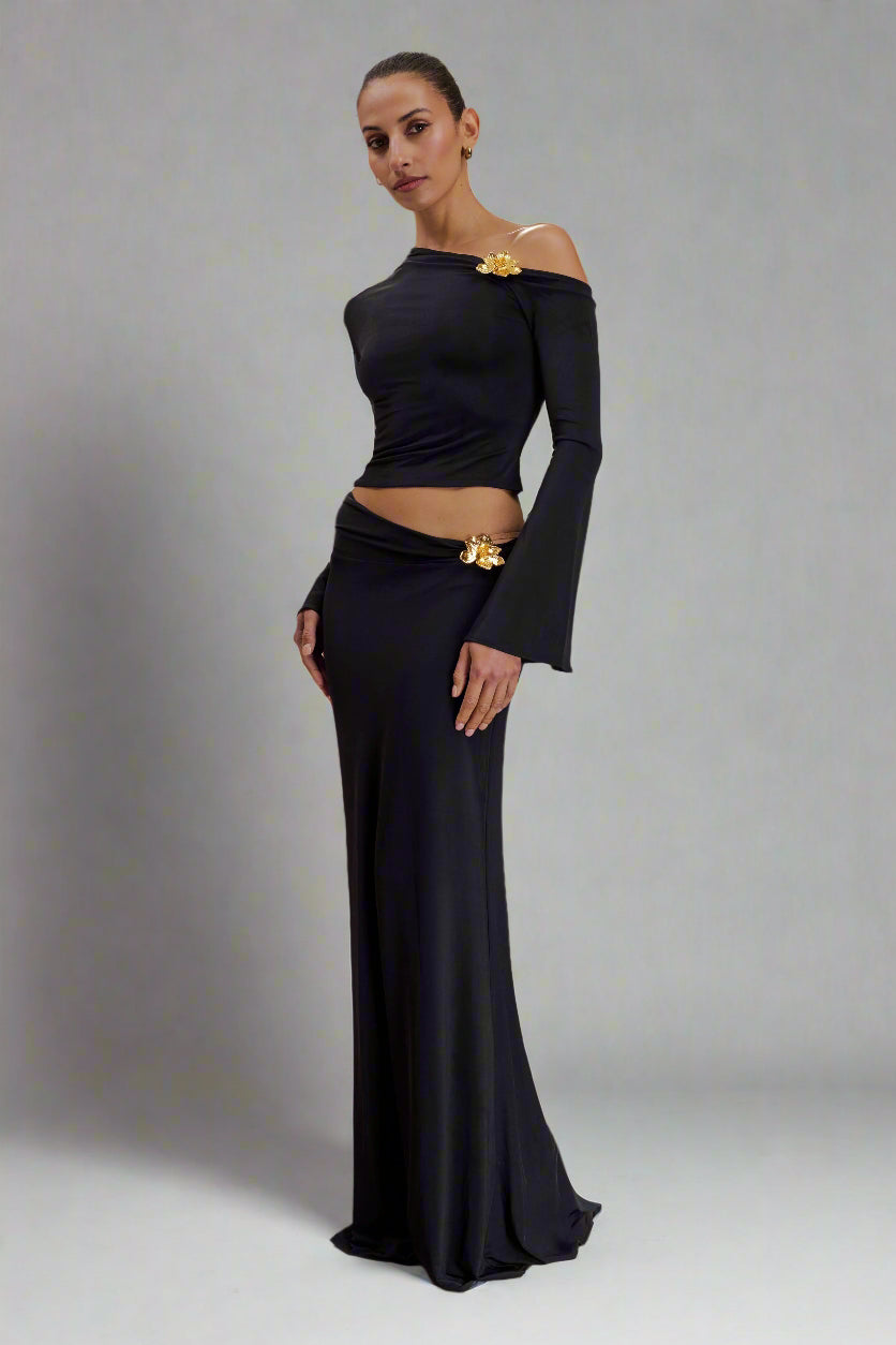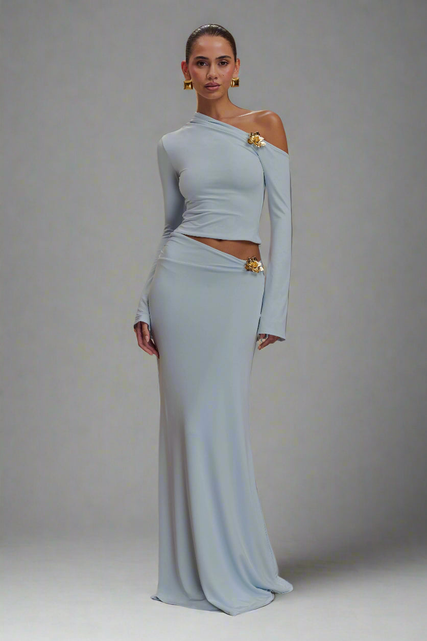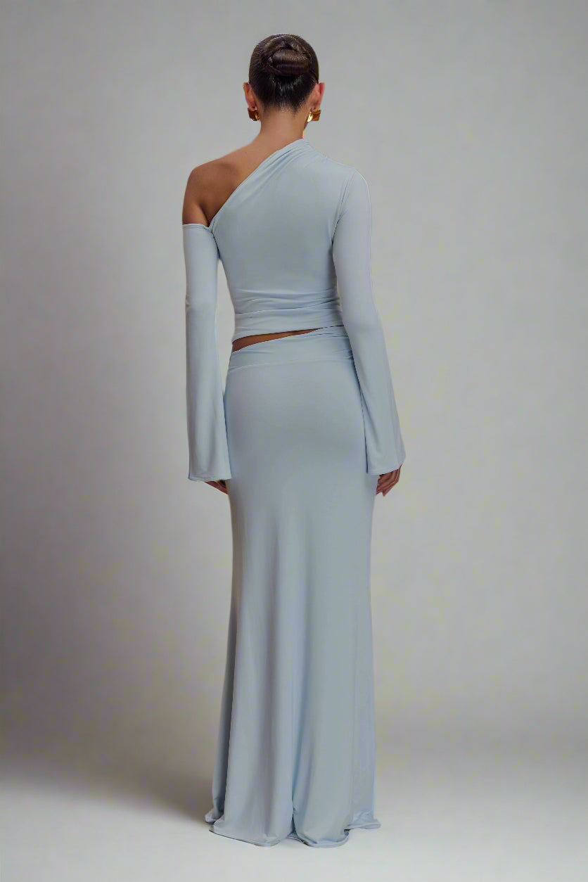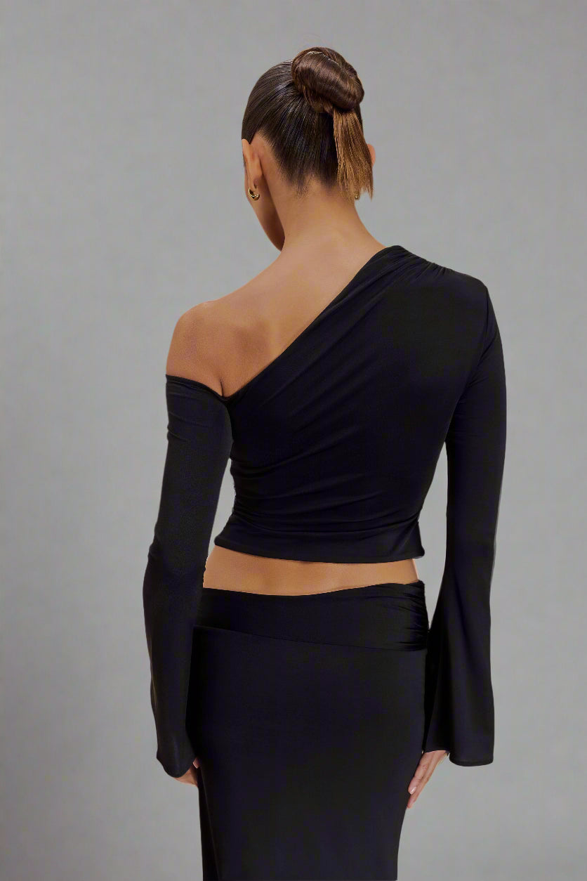 • Asymmetrical neckline and open shoulder