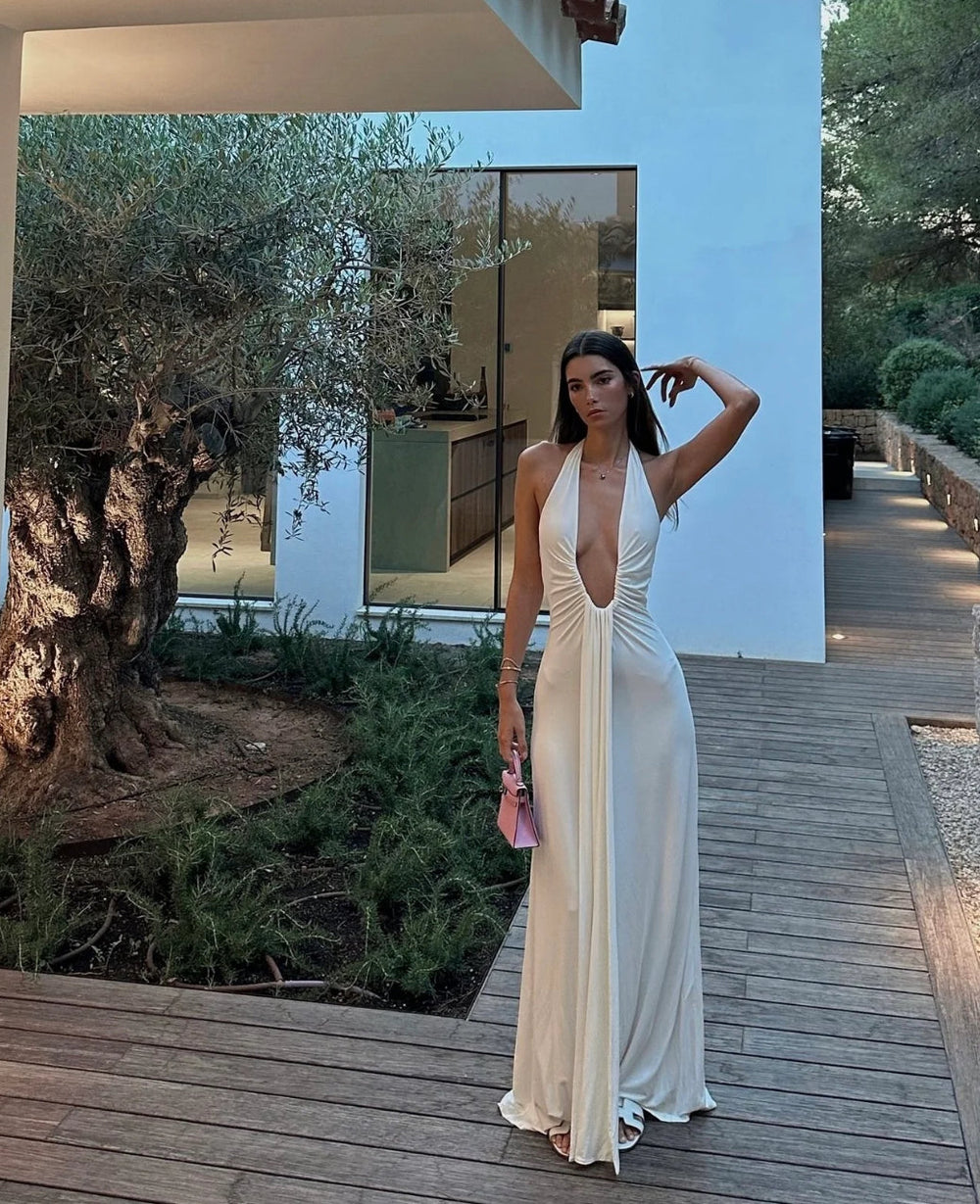 This new signature for the brand is innovative, with its plunging halter neckline that is finished with an adjustable wire and waterfall sash detailing. Jennifer pushes the boundaries with her long clean lines that expose the wearers cleavage ever so subtly. This silhouette sweeps the floor and fits closely to the female form. Pair Jennifer back with an embellished heeled sandal for an effortless, yet impactful look.