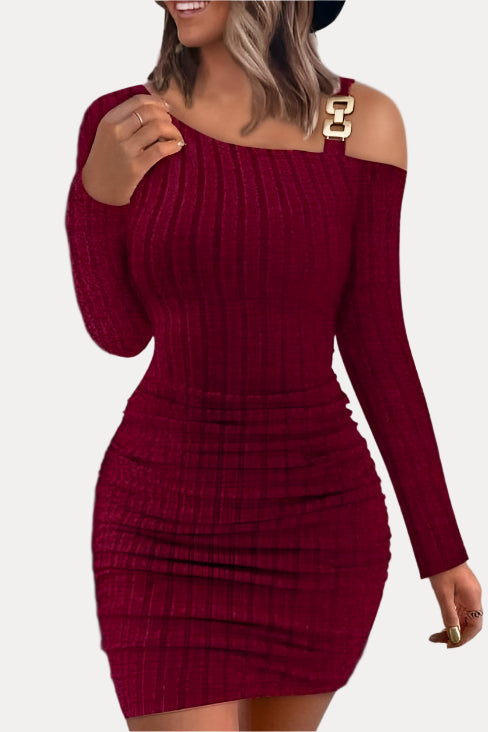 Show off your fun-loving side with our Off-shoulder Slanted Collar Tight Dress. This playful dress combines a flirty off-shoulder design with a unique slanted collar for a one-of-a-kind look. The tight fit hugs your curves in all the right places, making you feel confident and stylish. Get ready to turn heads and make a statement in this quirky dress!