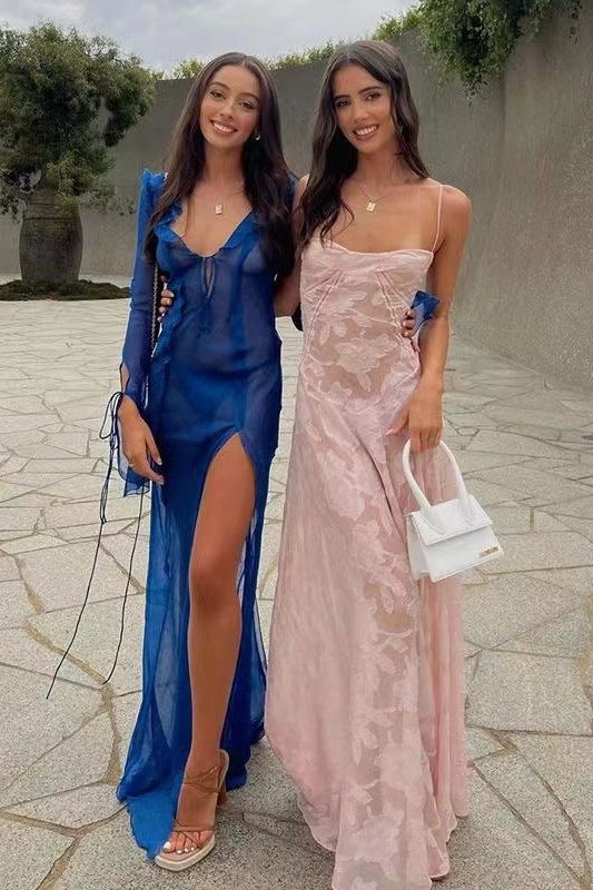 This floral dress isn't just an ordinary dress - it's a see-through fishbone suspender dress! With a touch of quirkiness, this unique piece adds a playful edge to your wardrobe. Show off your style and have some fun with this one-of-a-kind dress.