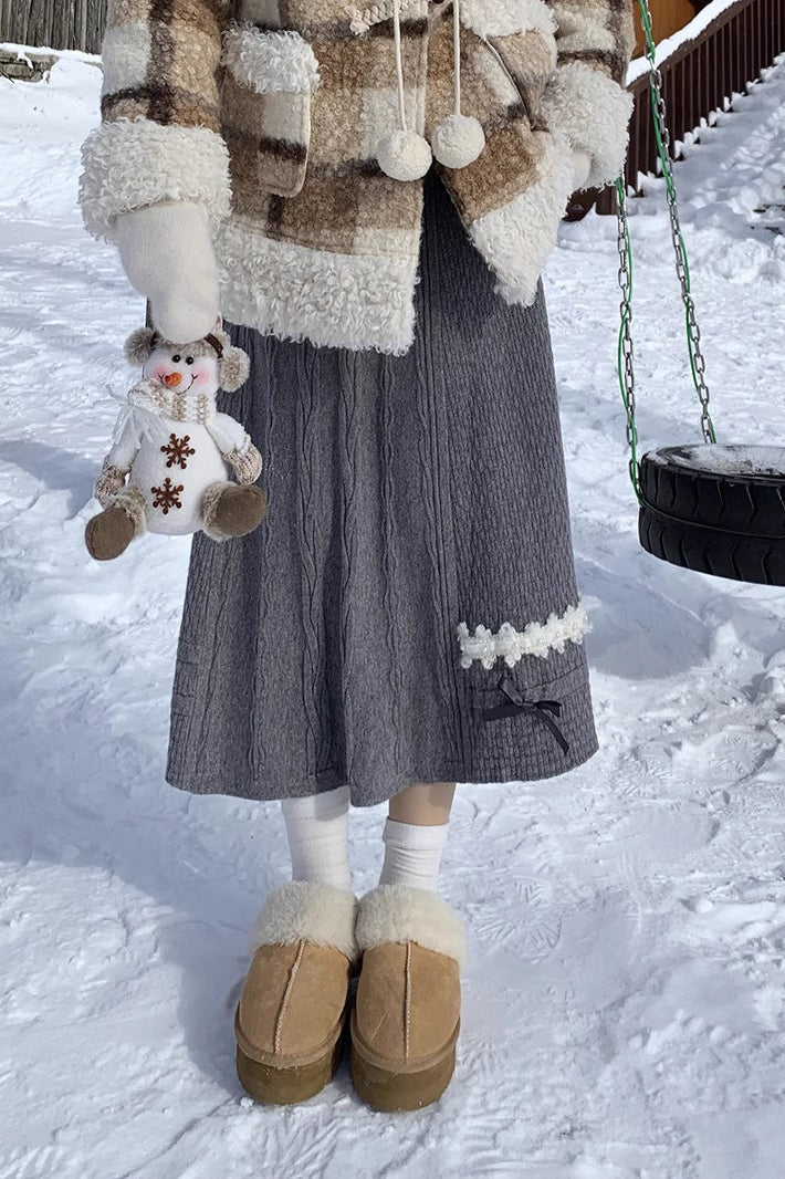 Bow Detail Knit A-Line Christmas Skirt