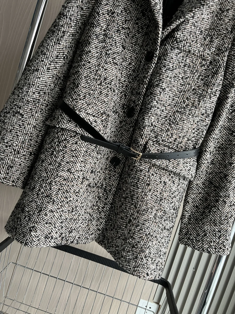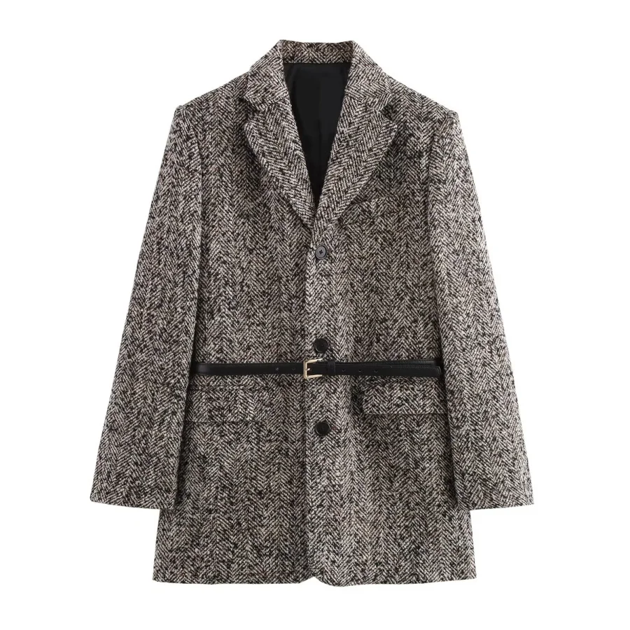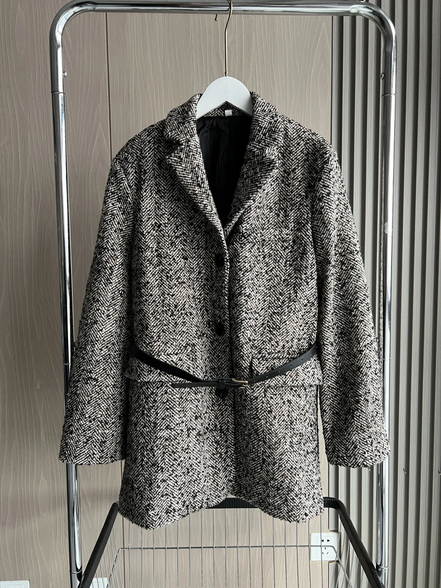 Autumn/Winter New women's ZW series with belt tweed loose version of waist waist suit jacket 3736247