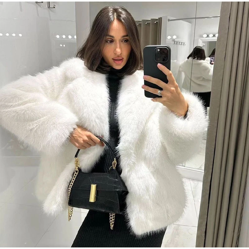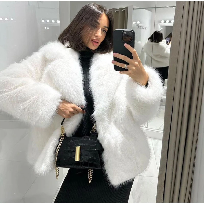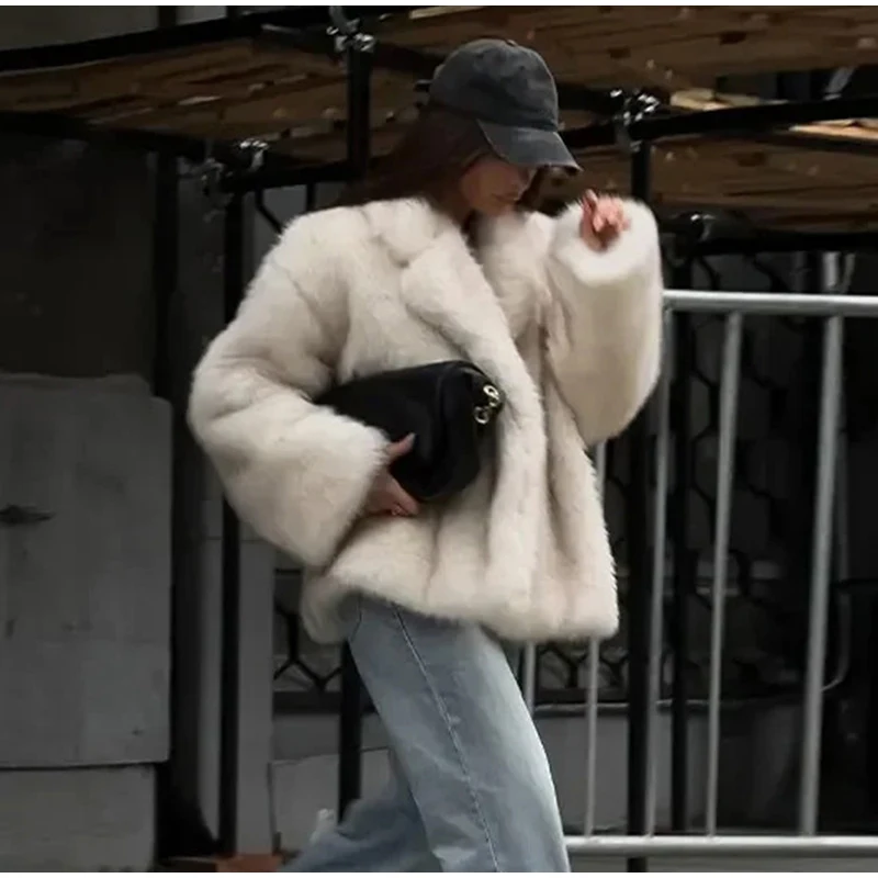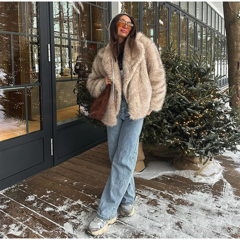 Furffy Thicken Jackets Women Faux Fur Loose Lapel Long Sleeves Warm Coats Female Winter Fashion Solid Soft Outwears Lady