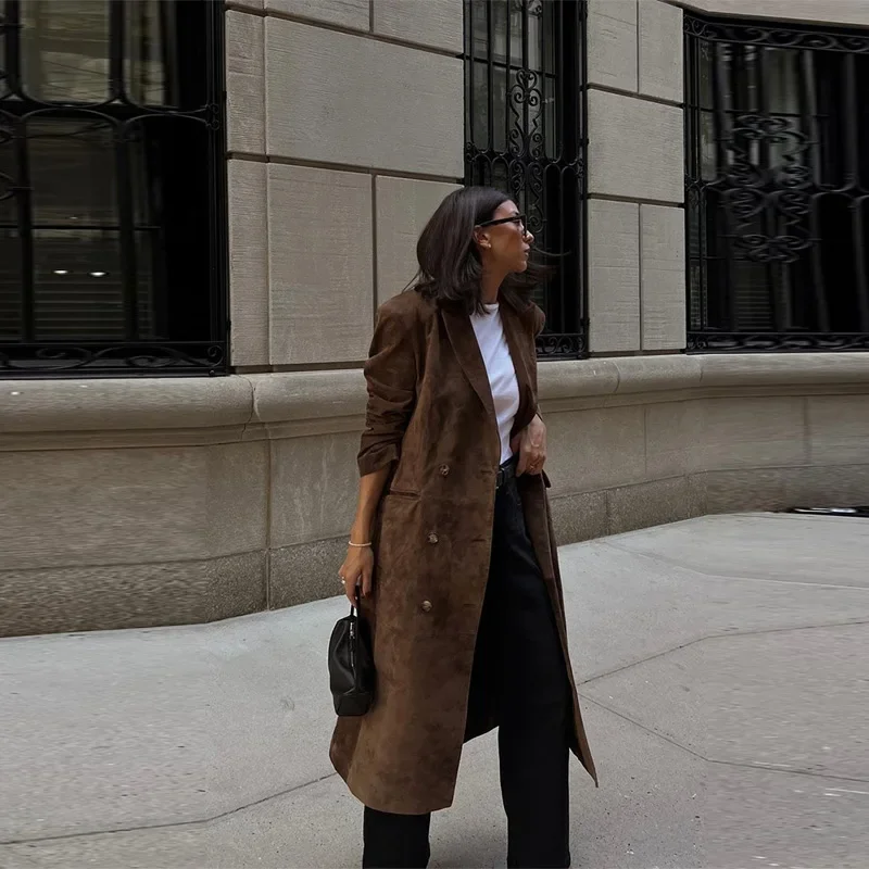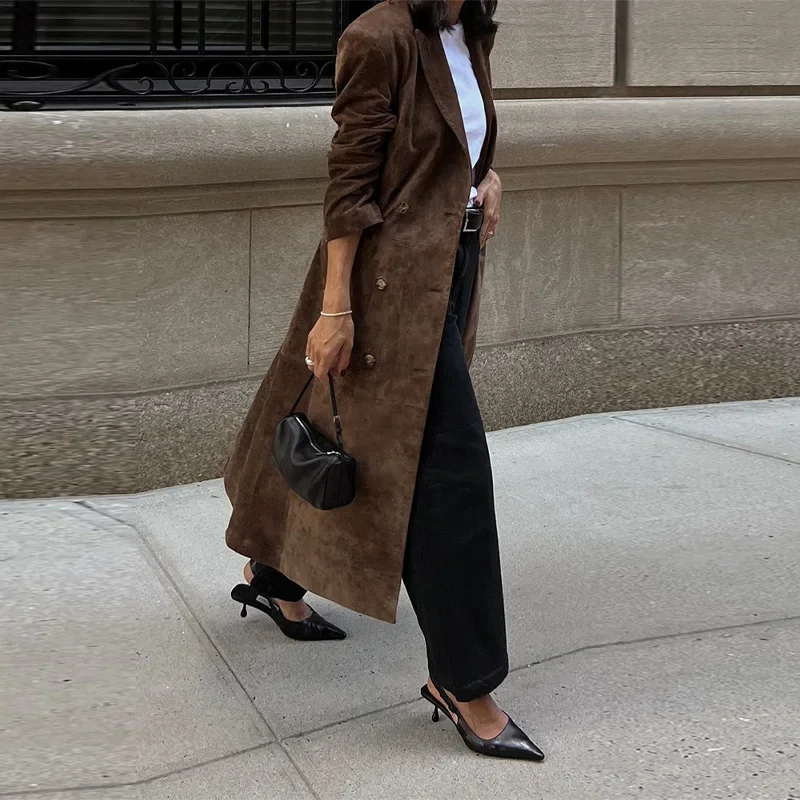Casual Solid Long Women Streetwear Long Sleeve Turn-down Collar Double Breasted Female Coat 2025 Autumn Fashion Lady Jacket New