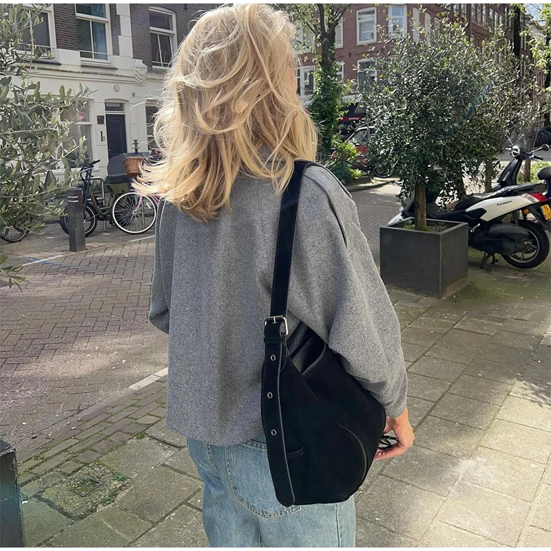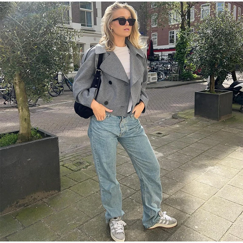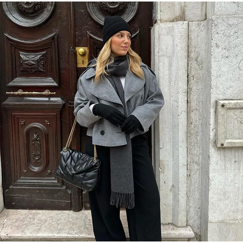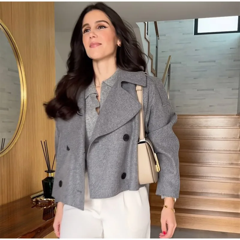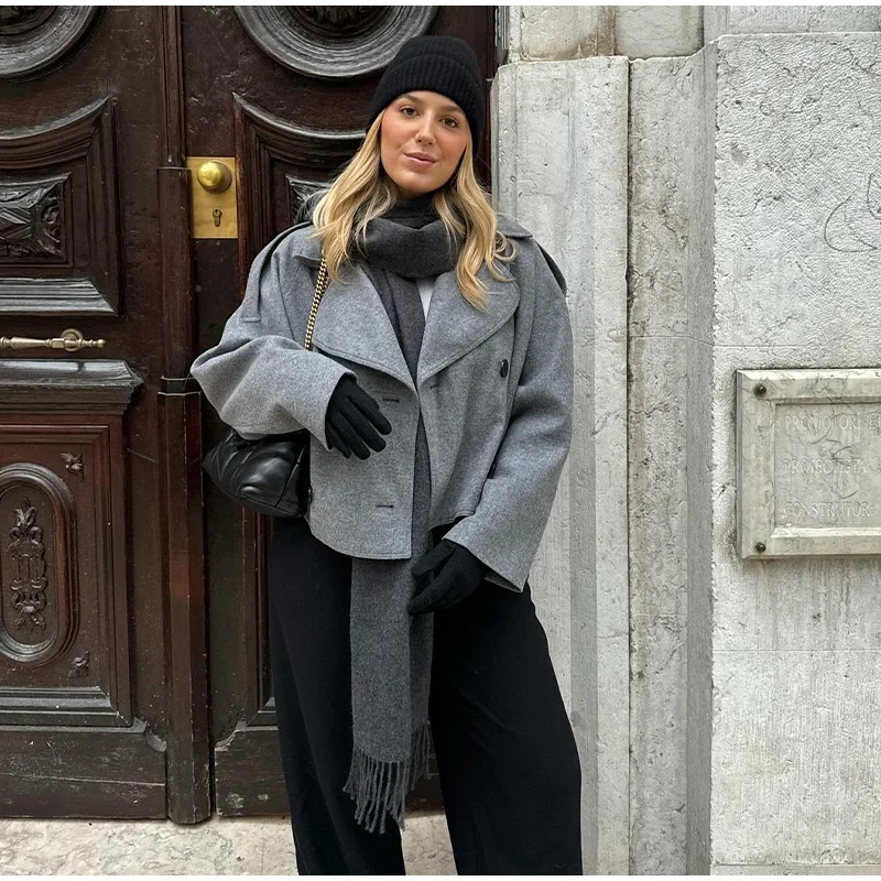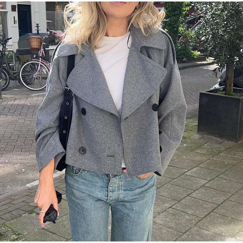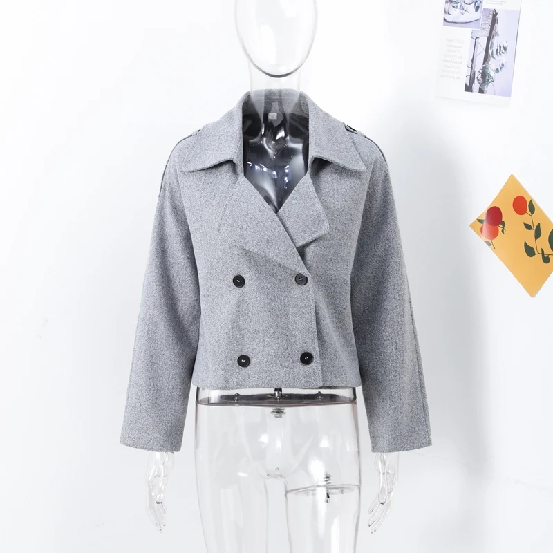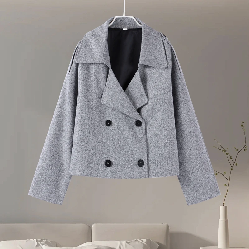Elegant Single Breasted Woolen Women Coat Loose Lapel Long Sleeve Female Short Jacket Autumn Winter New Grey Lady Outwear