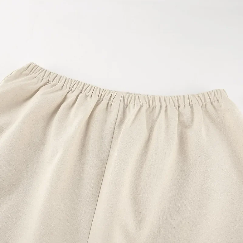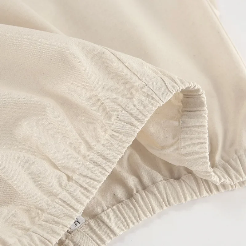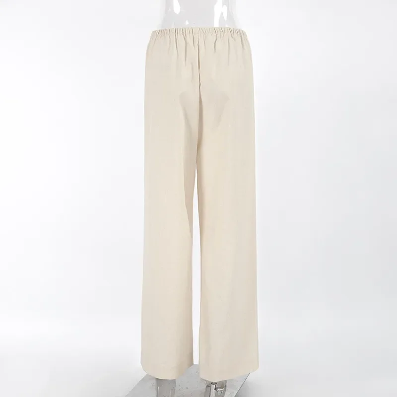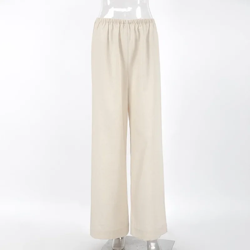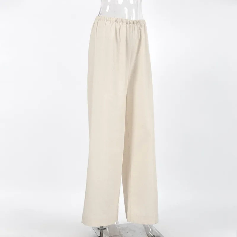 Cotton Linen Wide Leg Pants Women Fashion Elastic High Waist Pockets Casual Loose Trousers Streetwear Summer Vacation Bottoms