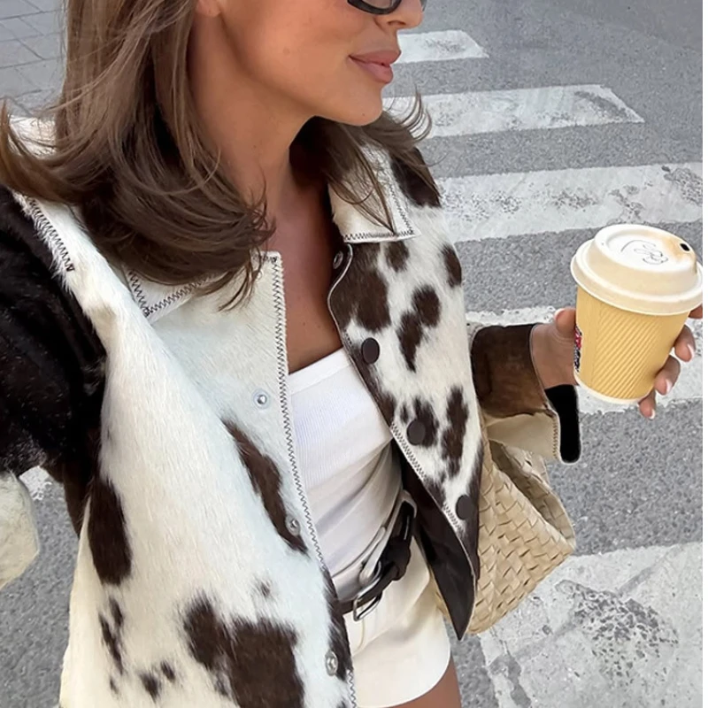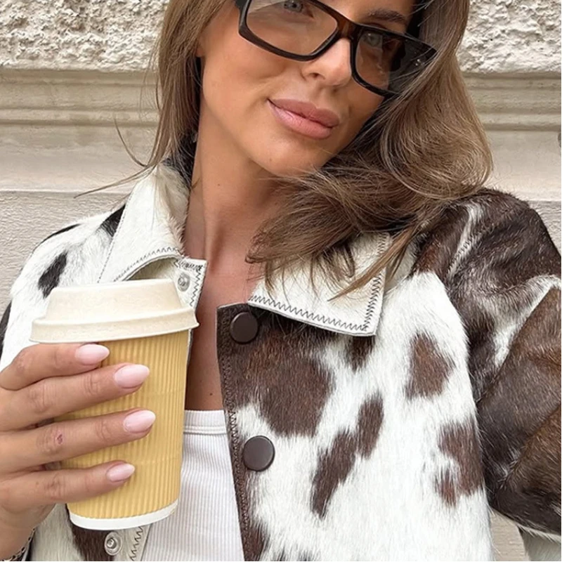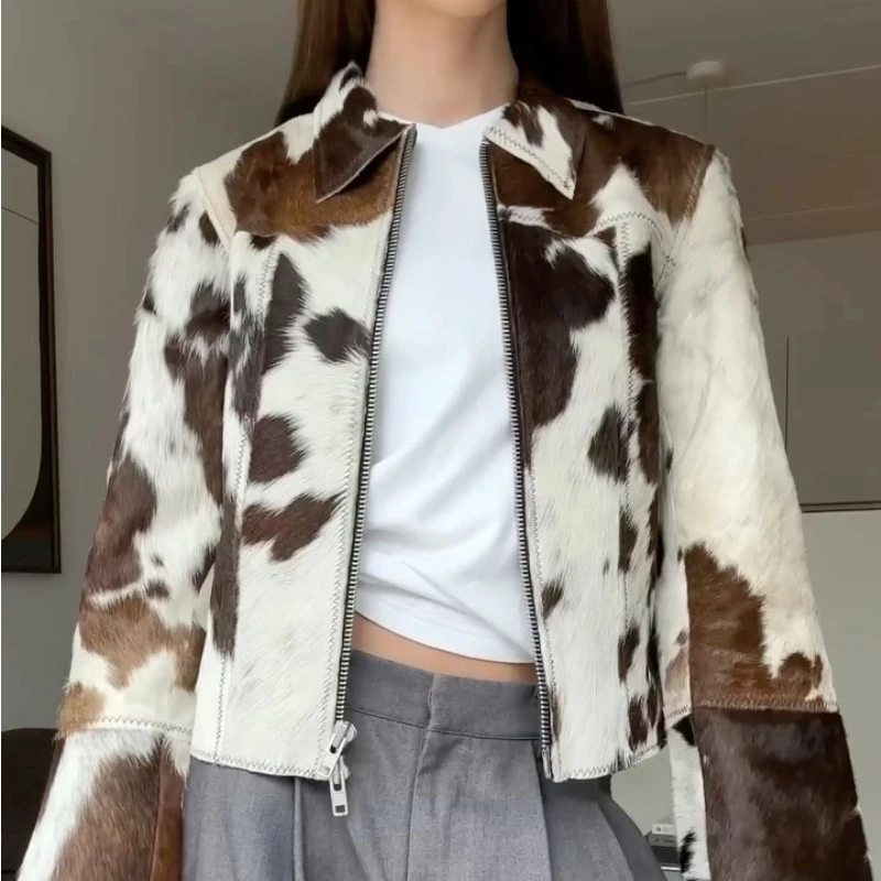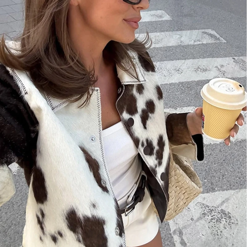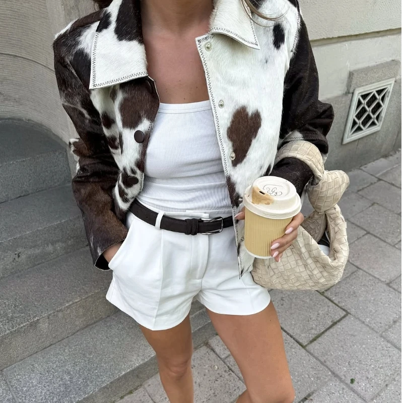 Chic Patchwork Printed Women 's Jackets Vintage Laple Zipper Full Sleeve Short Jacket Lady 2025 Autumn Fashion Female Streetwear