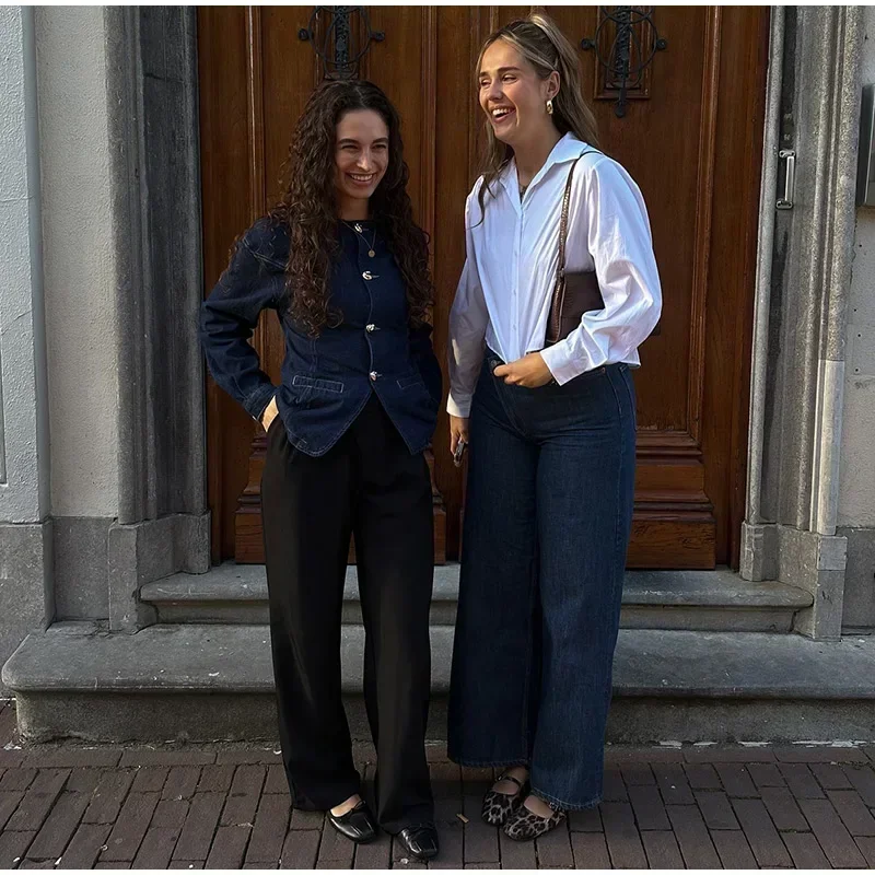 Fashion Y2K Denim Jacket For Women 2025 Spring Elegant O-neck Single Breasted Coat Female Chic Street Long Sleeve Lady Outerwear