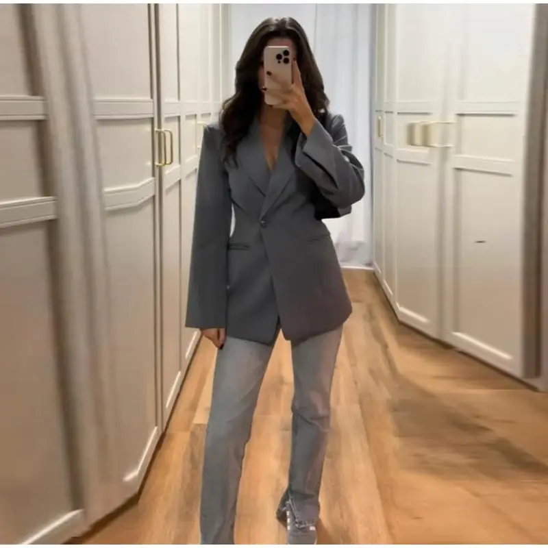 Vintage Solid Single Button Suit Jacket Women Elegant Slim Lapel Blazer Jackets Female New Spring Chic Street Office Outwear
