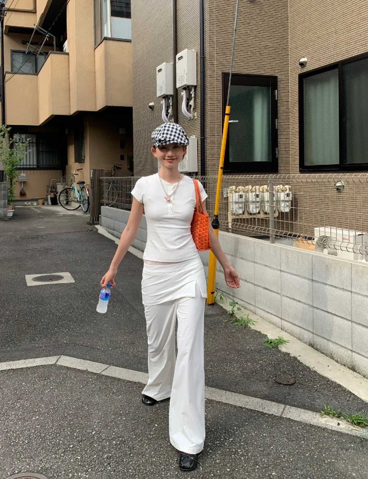 Women Lace Patch Strap Bootcut Pants white