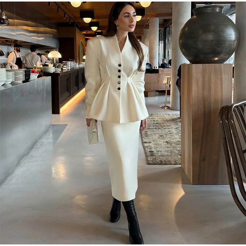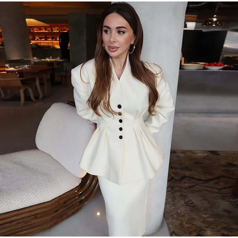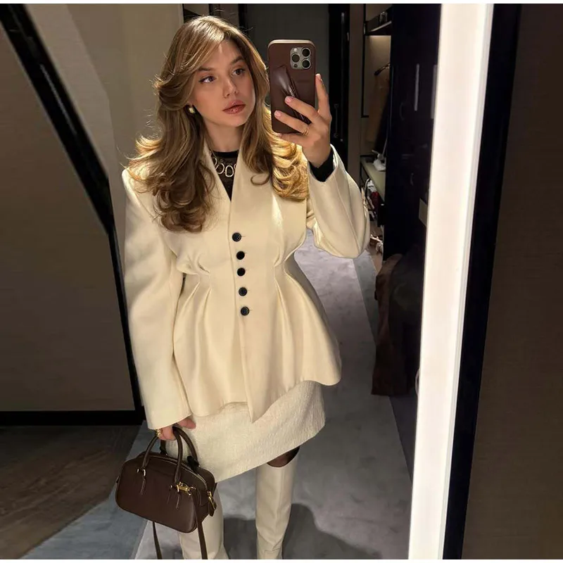 Elegant V-neck Slim Fit Jackets Women Vintage Solid Single Breasted Long Sleeve Coats Female Autumn Spring Chic Street Outwear