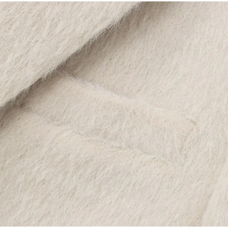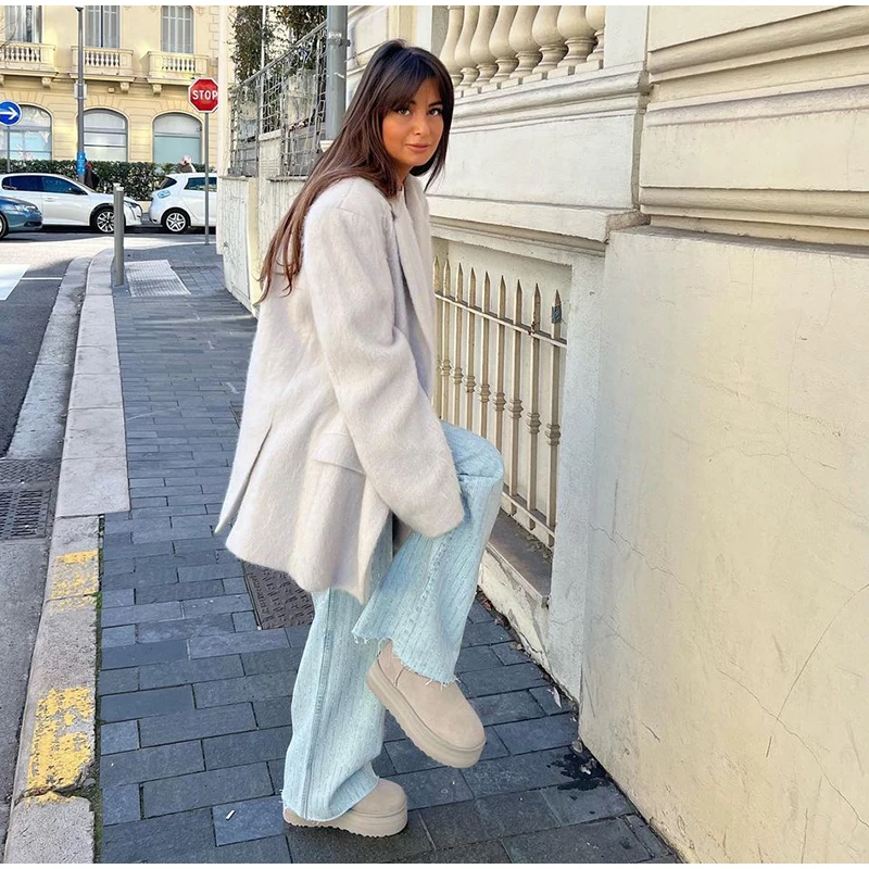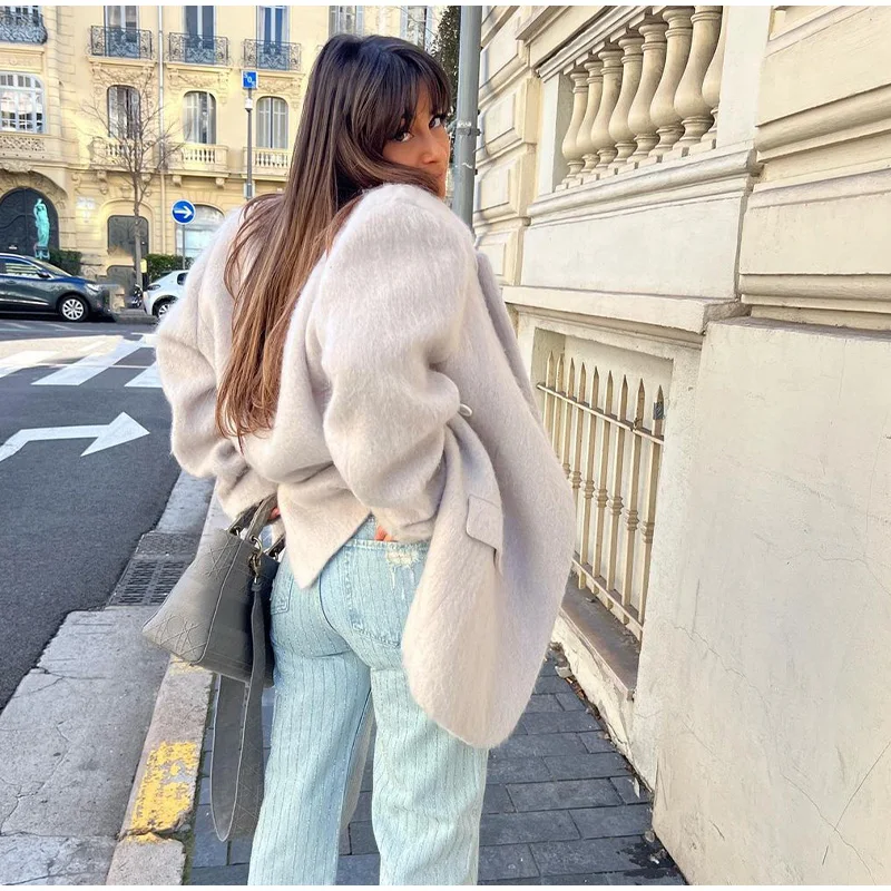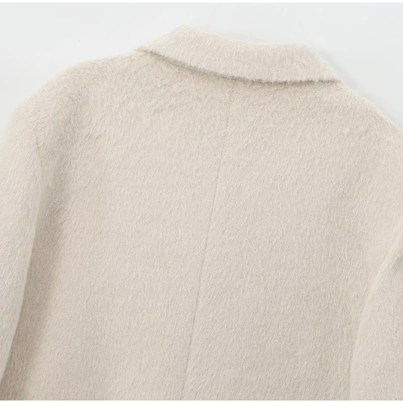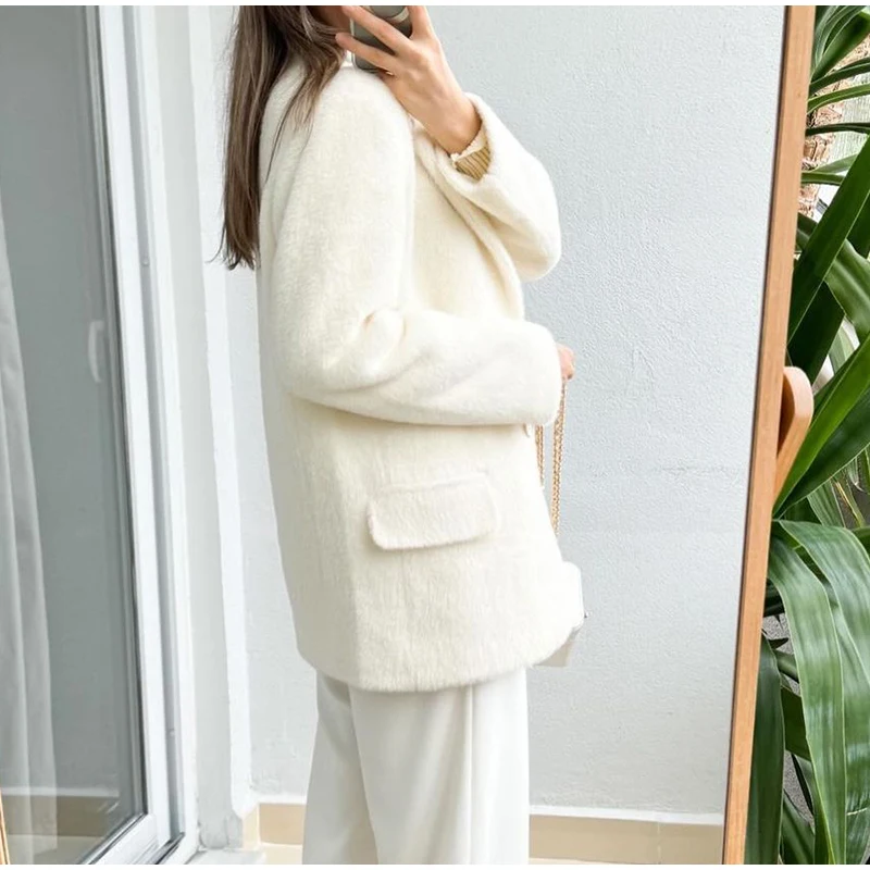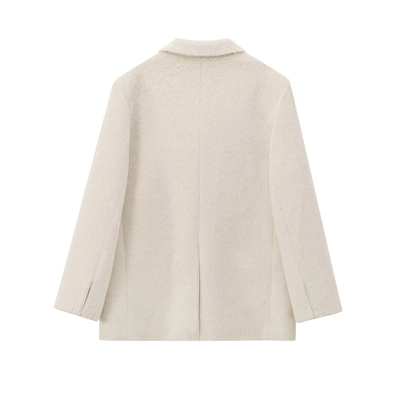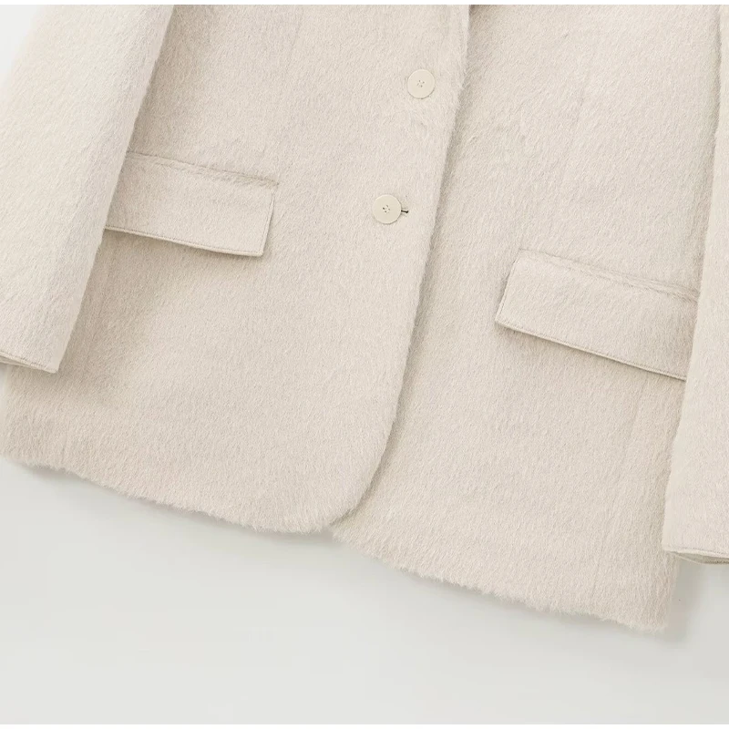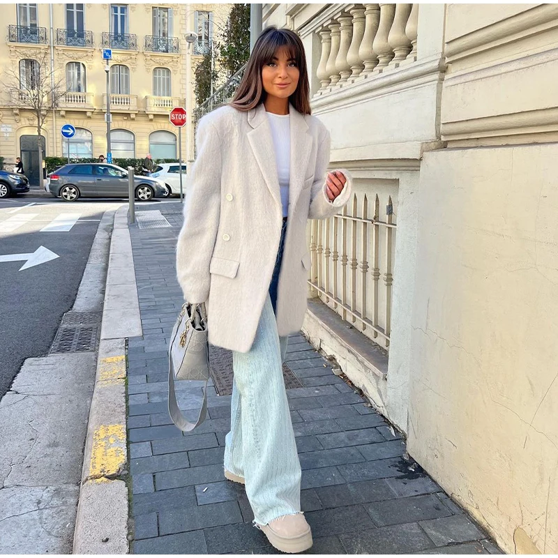 Furry Woolen Oversize Blazer Coat Women Turn-down Collar Button Up Thicken Warm Outwear Winter Long Sleeve Jacket Tops