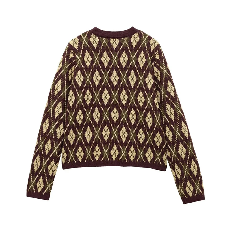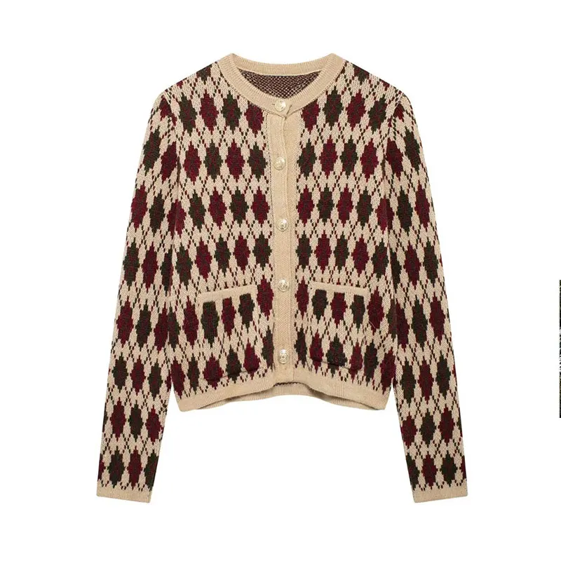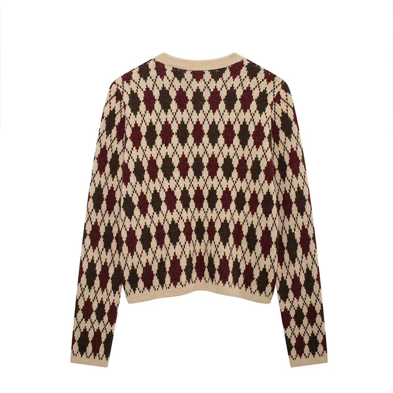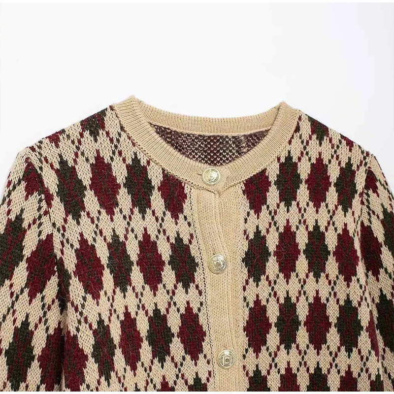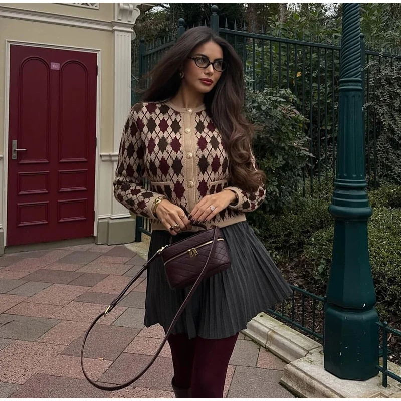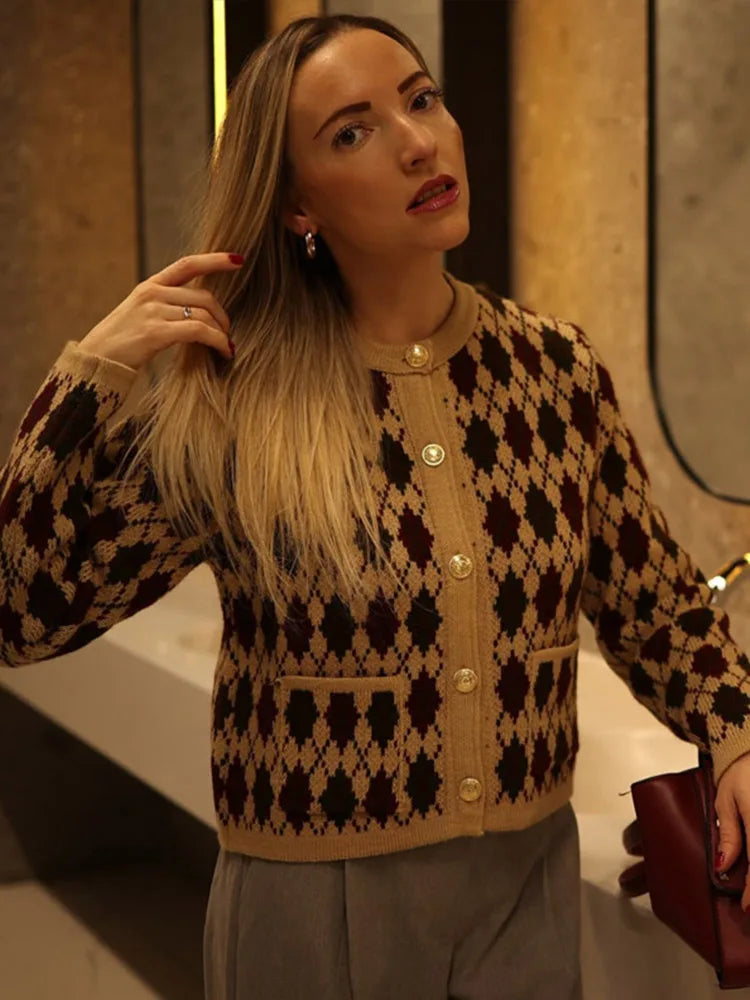 Check Plaid Knitted Cardigans Women Single Breasted Casual Loose Elegant Sweaters Long Sleeve Chic Coats 2024 Winter Lady Tops