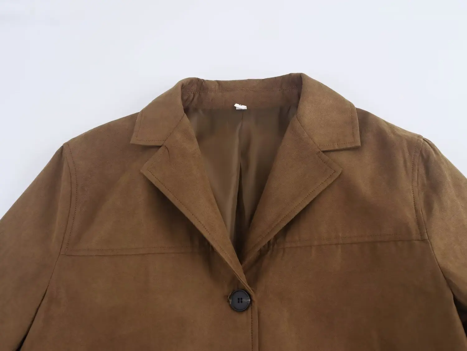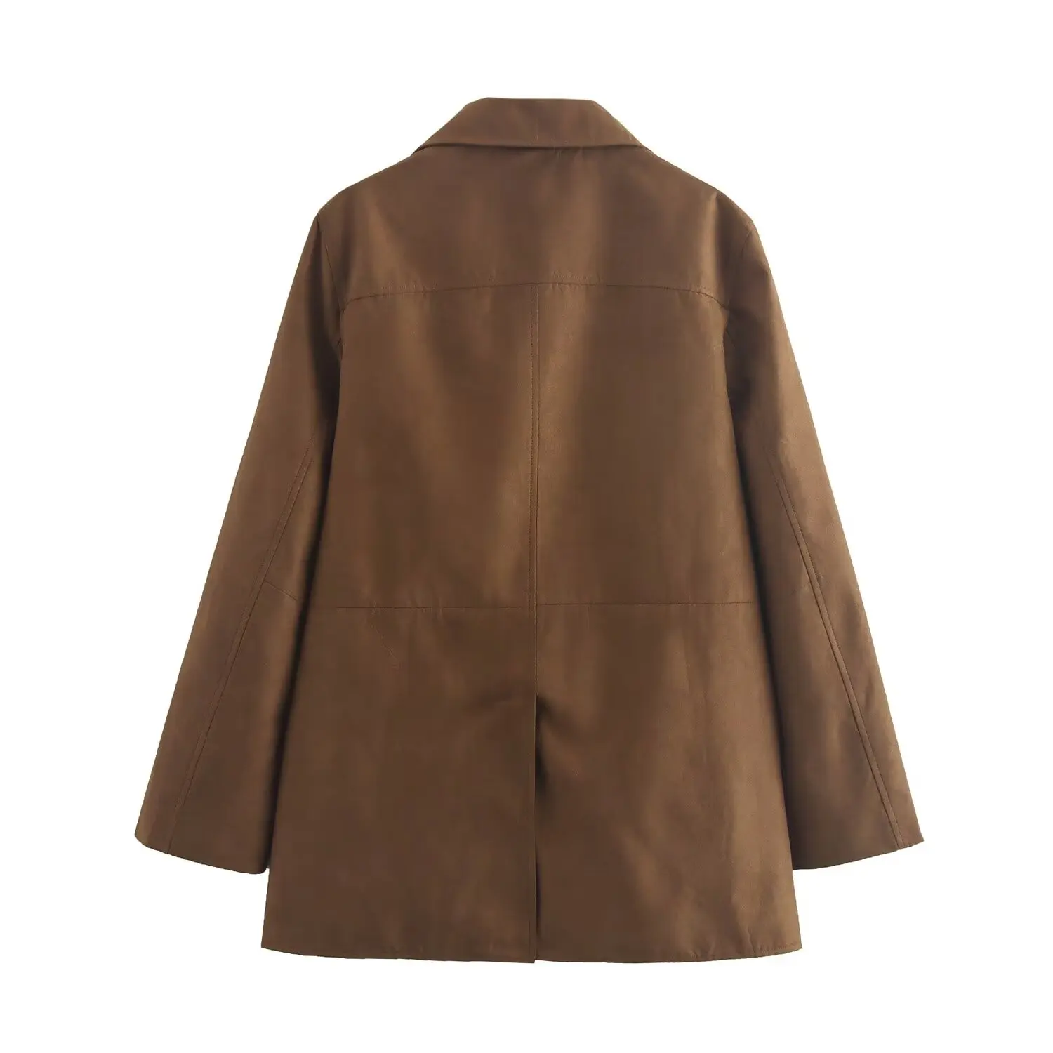 Turn Down Collar Brown Autumn Jacket for Women Casual Single Breasted Long Coat Jacket Female Winter Jacket Back Slit