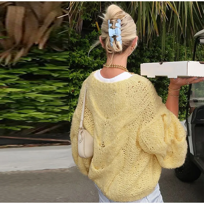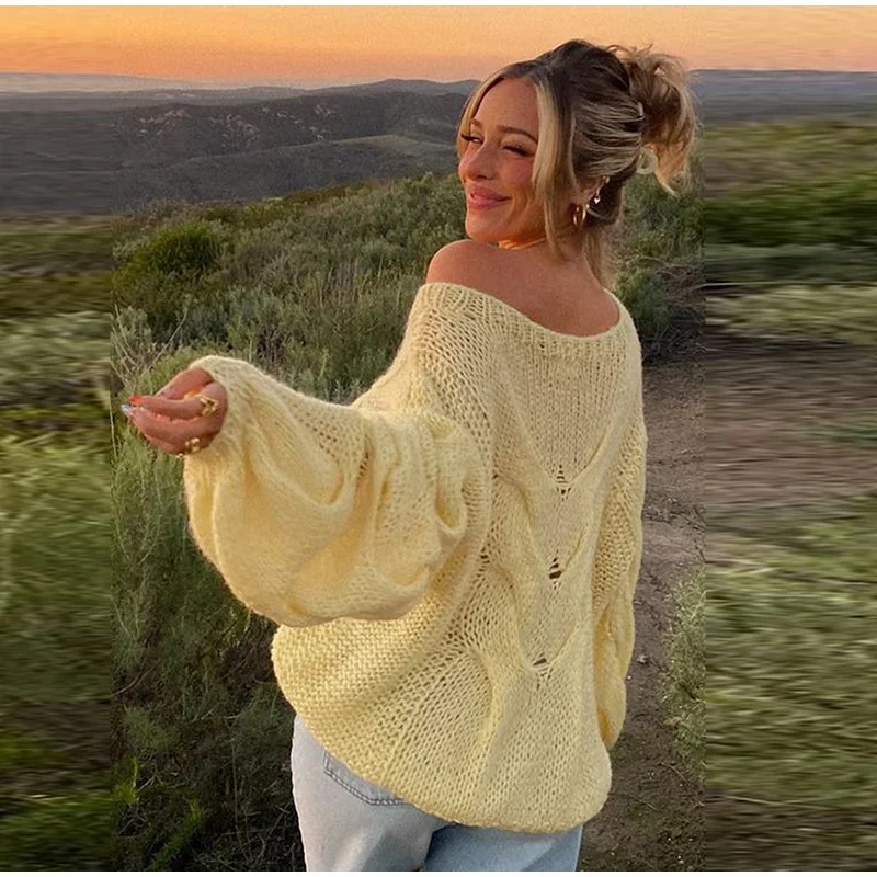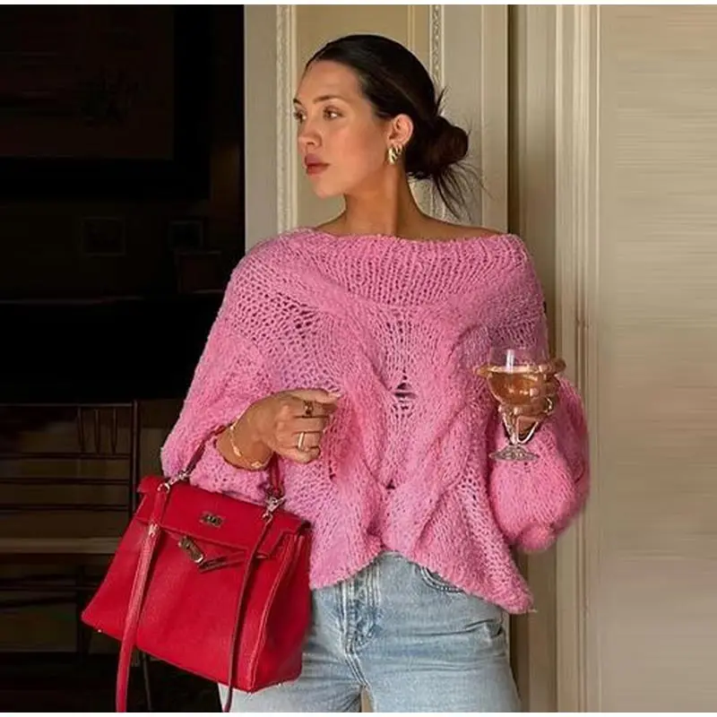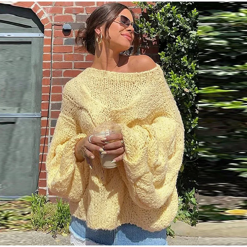 Vintage Knit Women Sweaters Lazy O-neck Full Sleeves Twist Female Pullover Autumn Winter Casual Oversize Lady Knitwear Tops