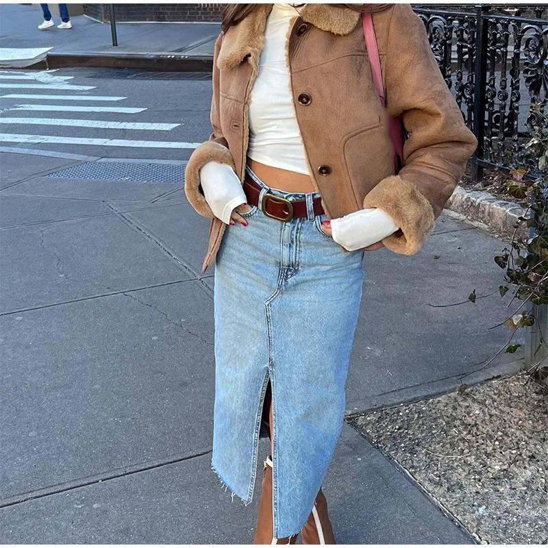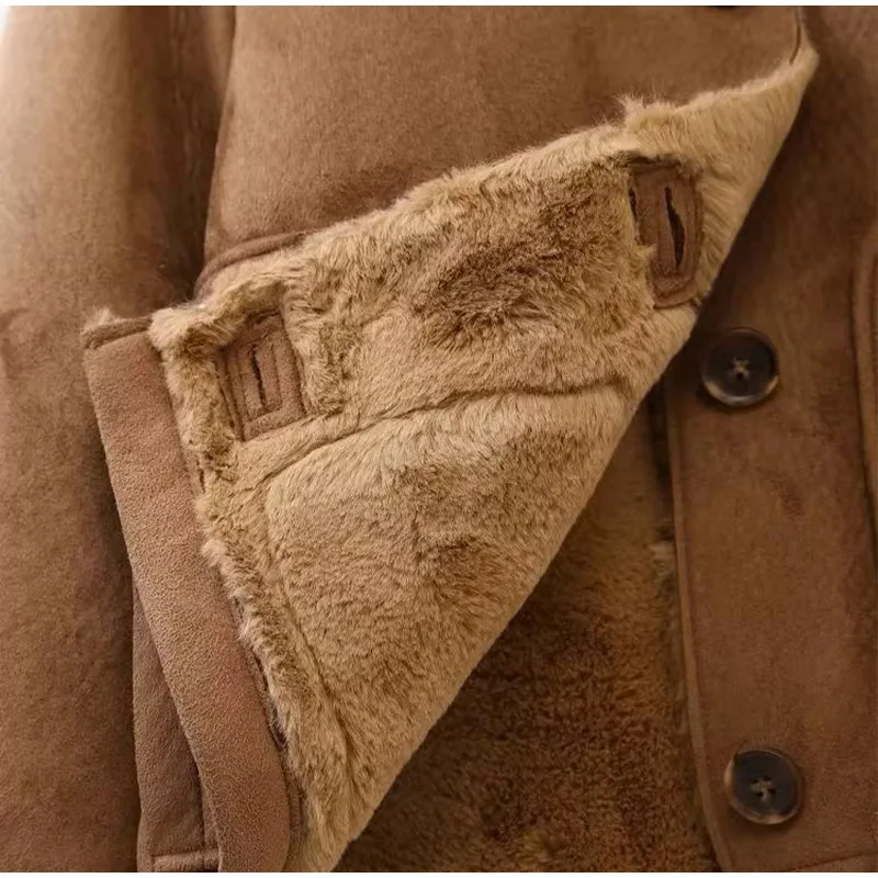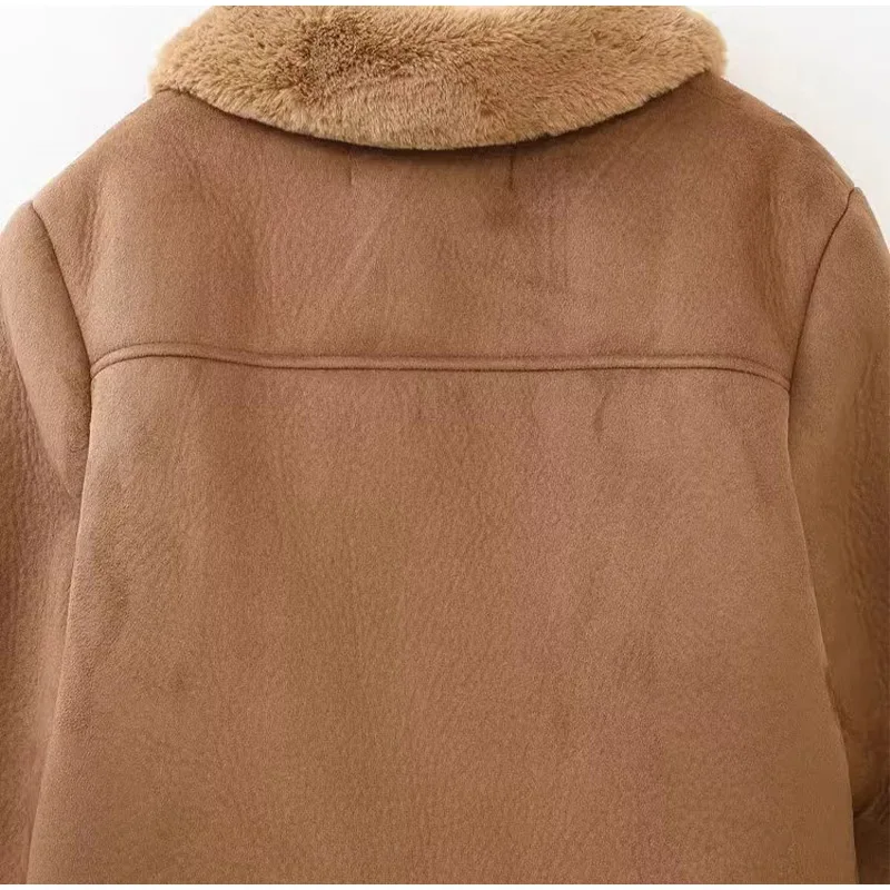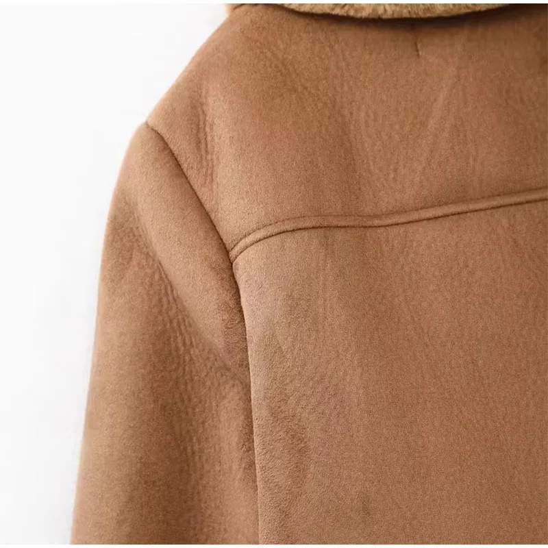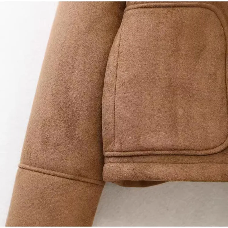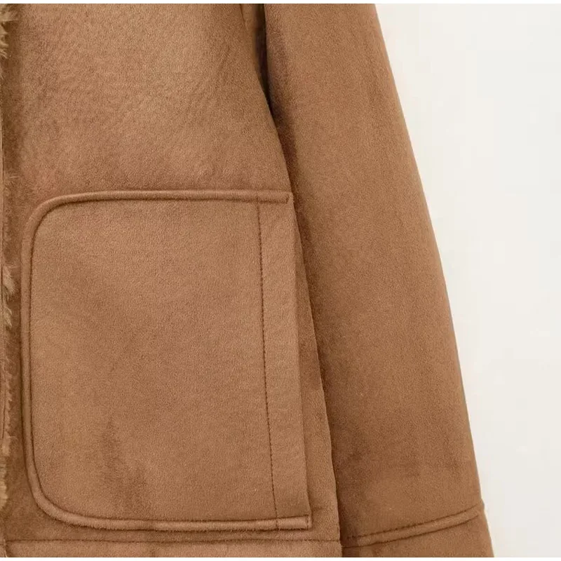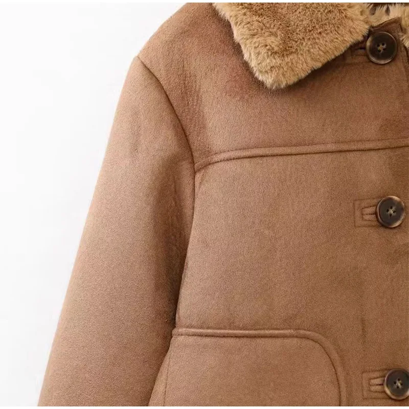 Solid Color Elegant Thicken Lapel Short Jacket Winter New Woman Single Breasted With Pockets Coat High Street Outerwear