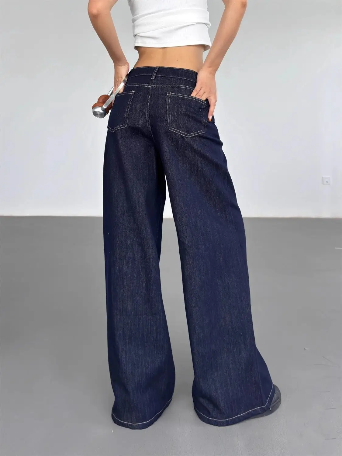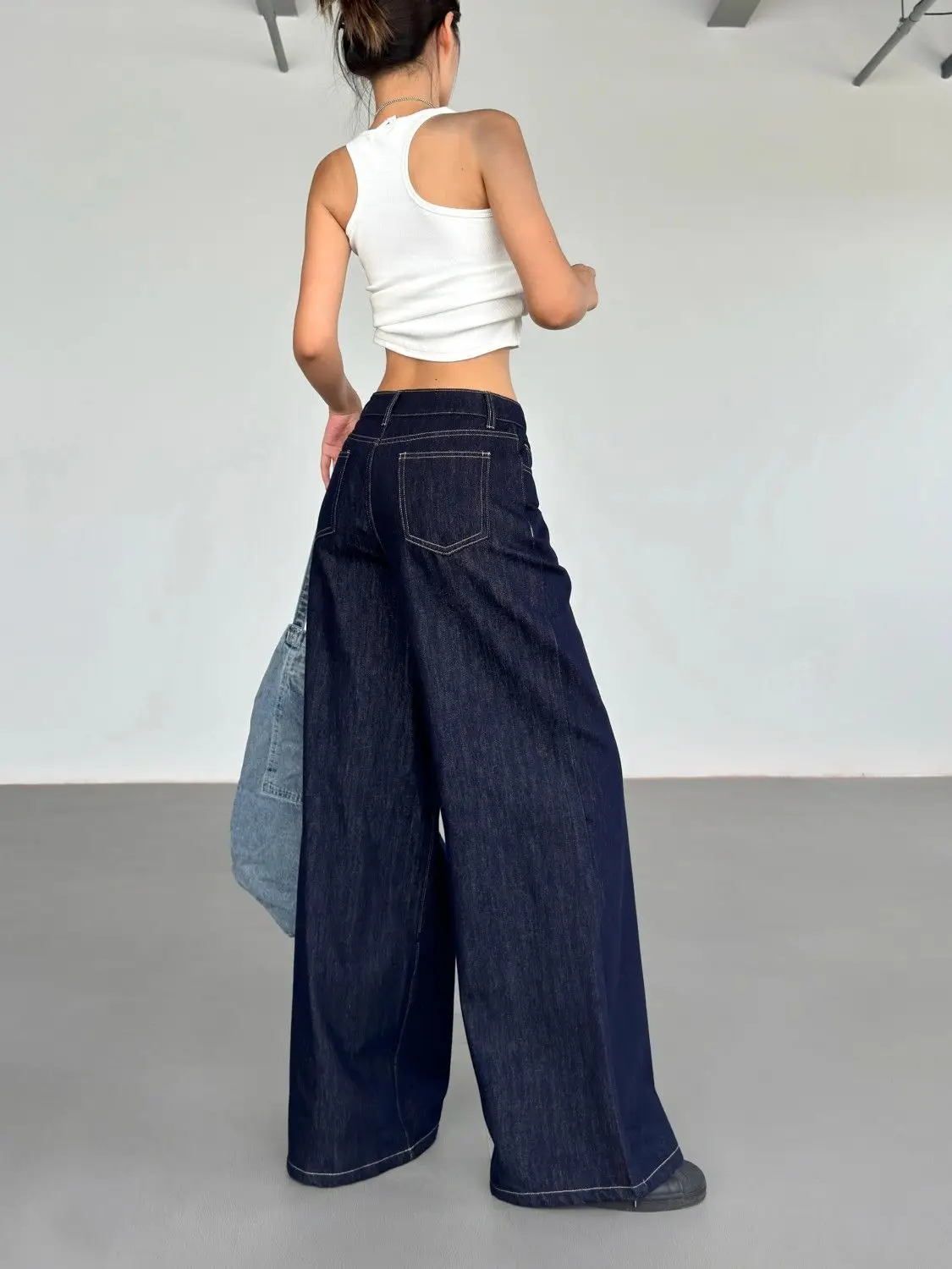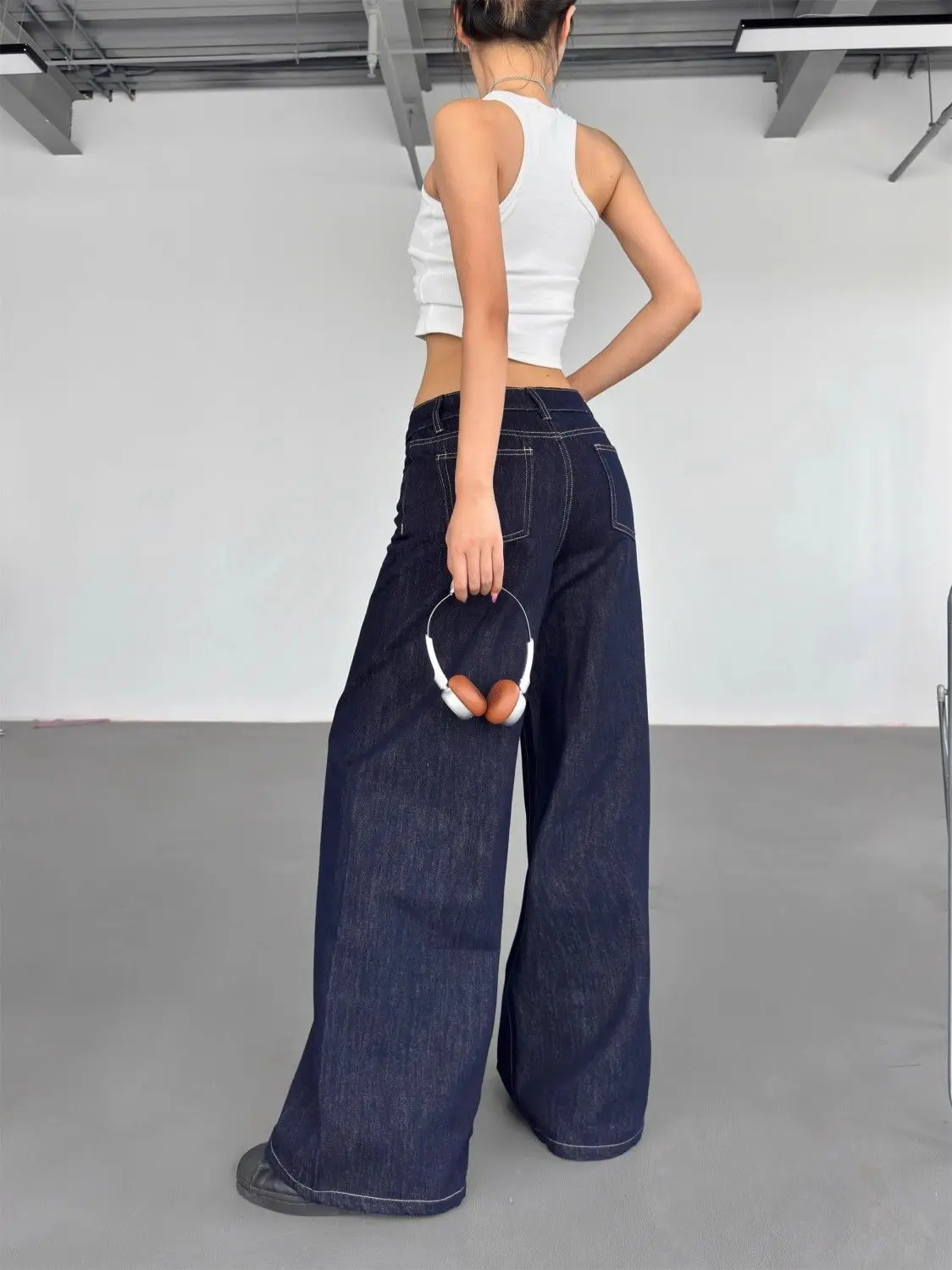 Y2k Vintage Blue Jeans Woman America Retro Baggy Harajuku Casual Denim Pants Korean Style Wide Leg High Waist Trousers