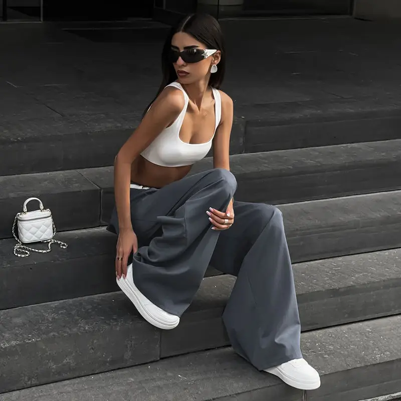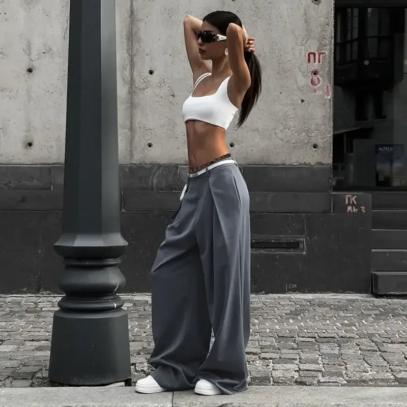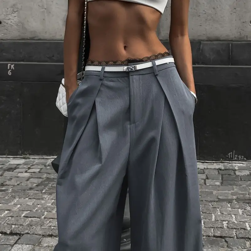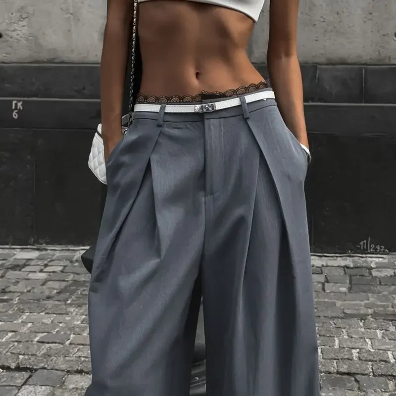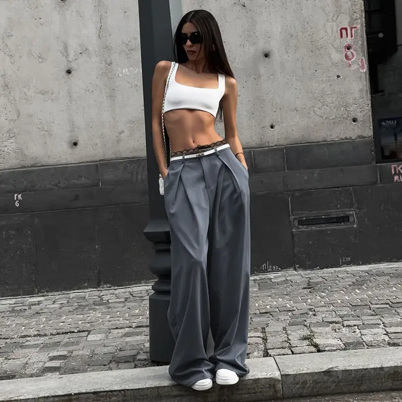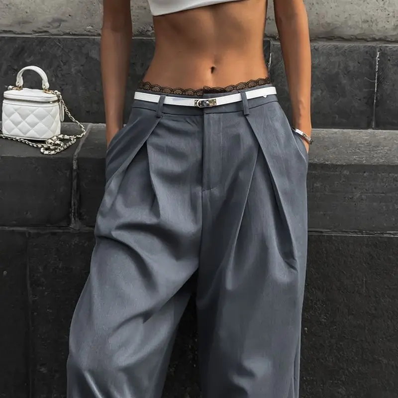 TAVIMART - Y2K Lace Patchwork Waist Pants Women Baggy Casual Korean Oversize Office Trousers