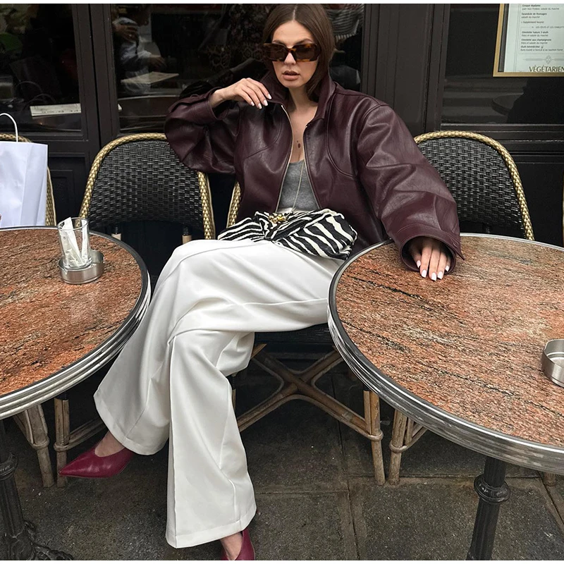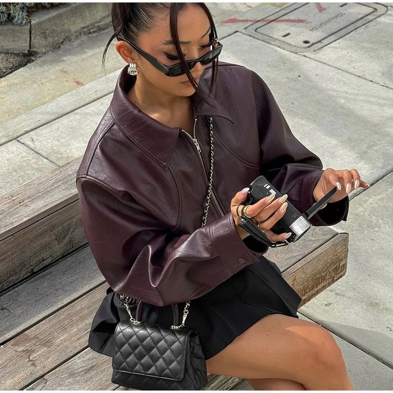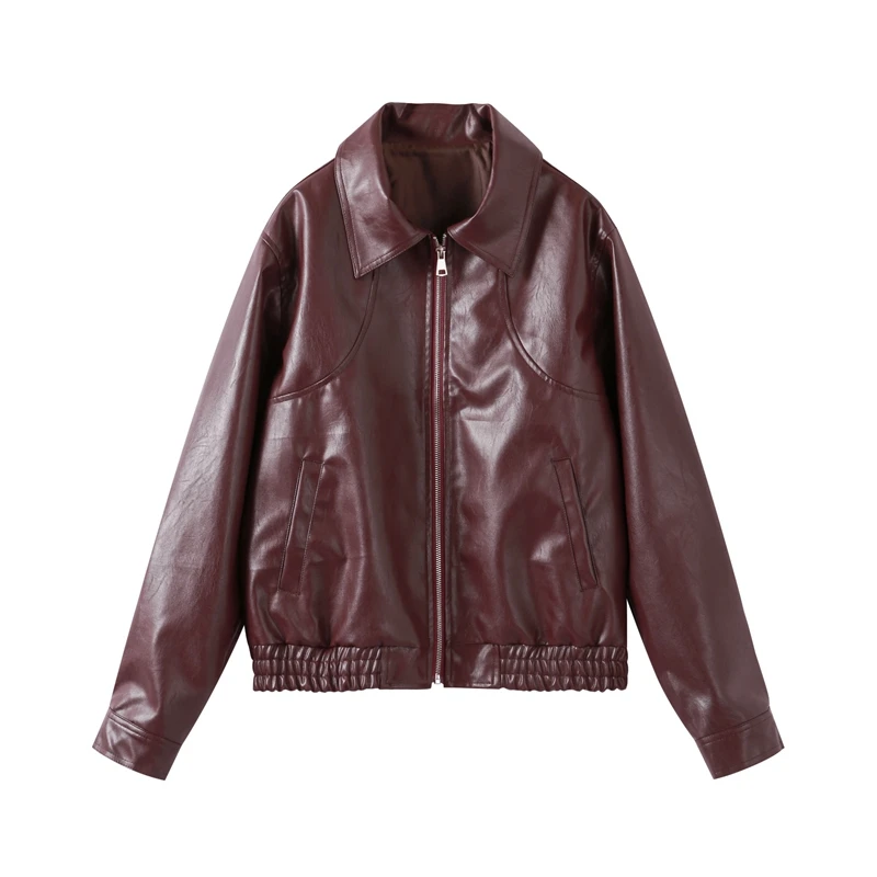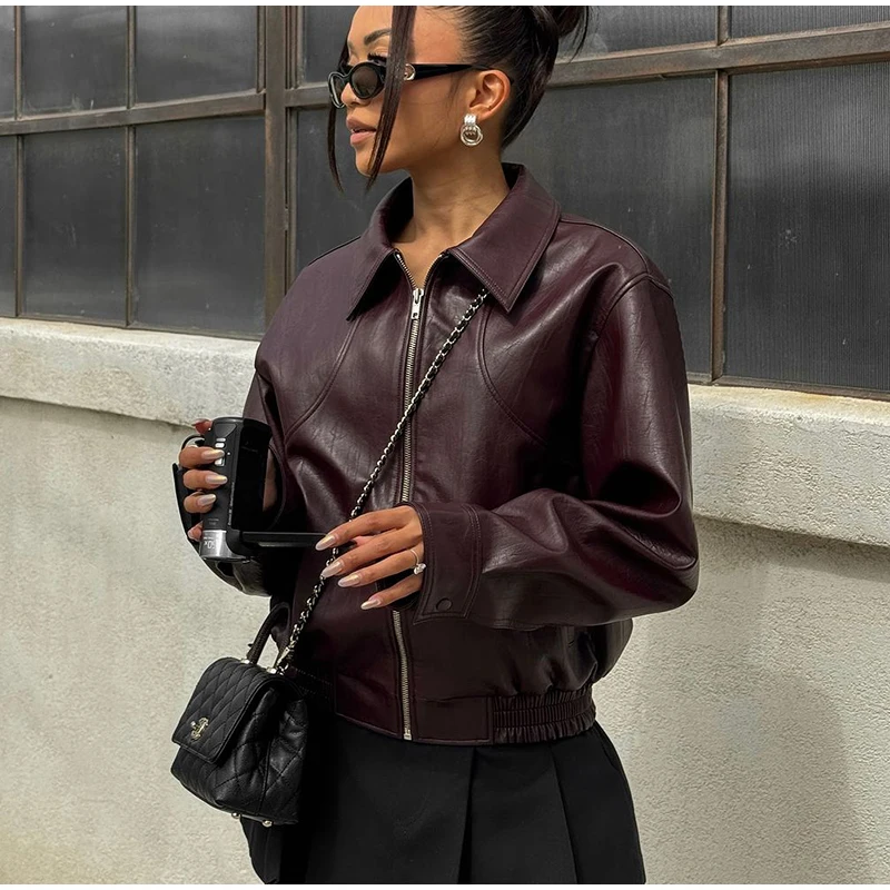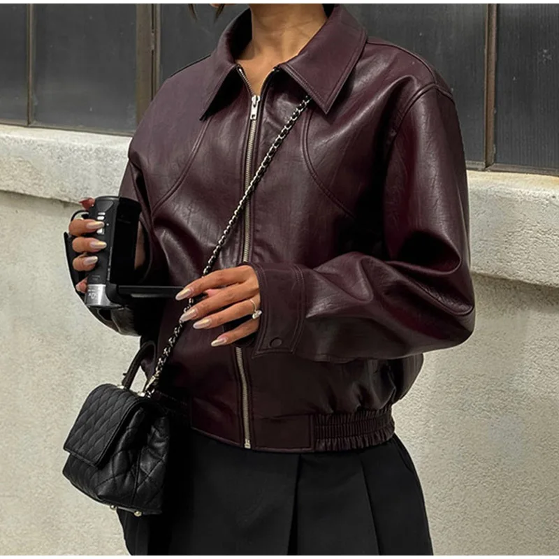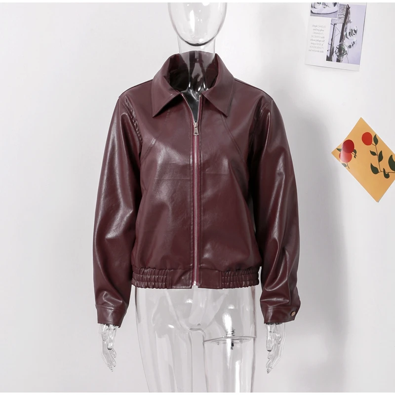 PU Leather Women Jackets Coats Casual Turn Down Collar Long Sleeve Zipper Female Motorcycle Top Coat Autumn Vintage Outwear