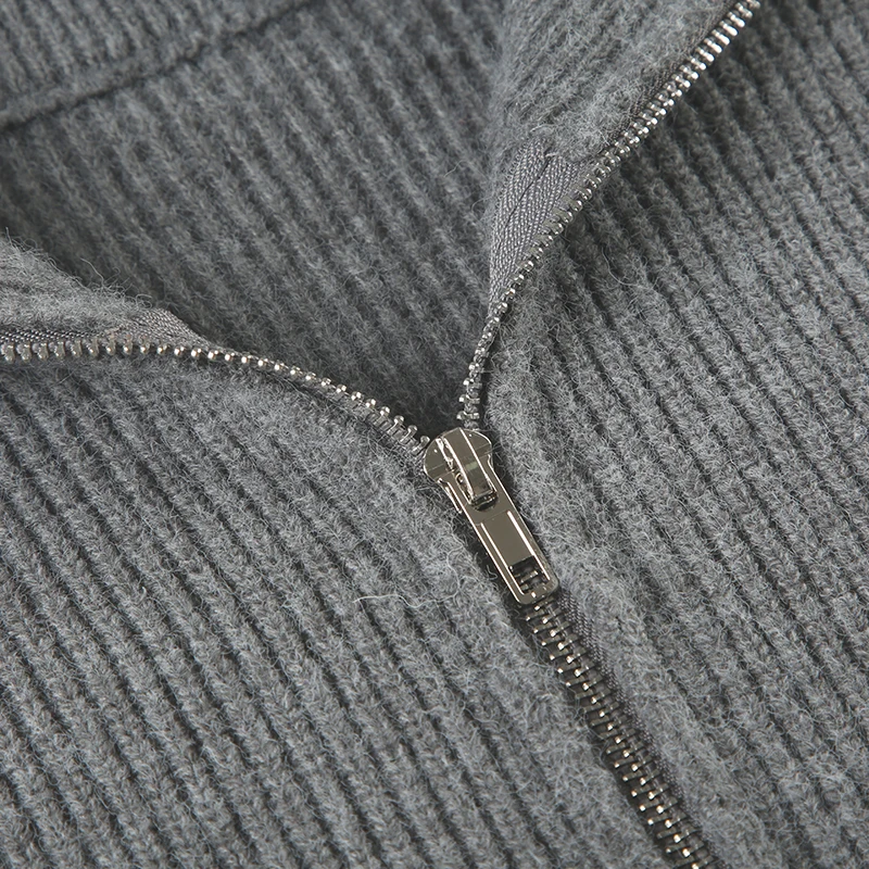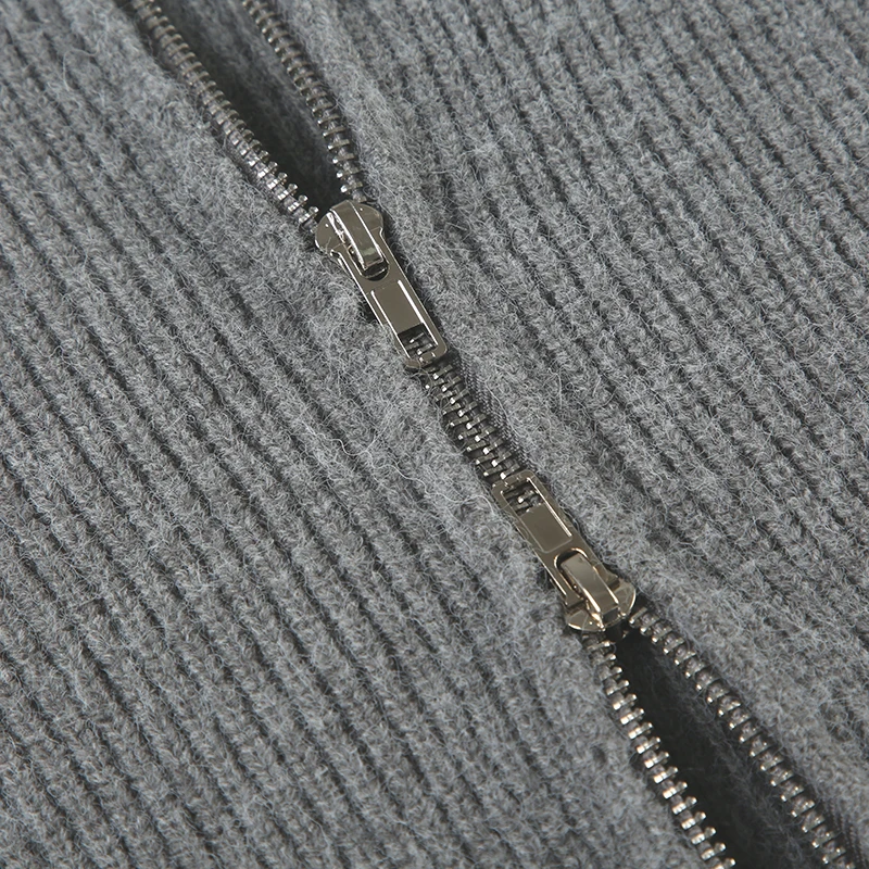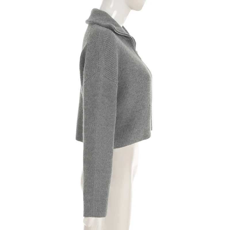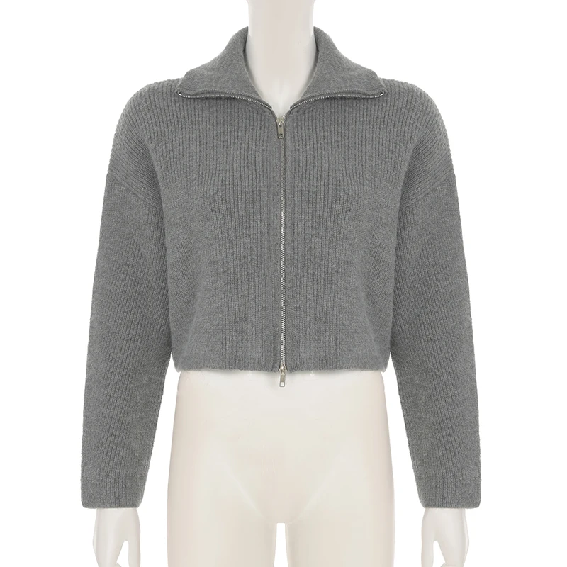 Casual Solid Zipper Knitted Cardigans Slim Turn-Down Collar Long Sleeve Sweater Coats Women Autumn Winter Fashion