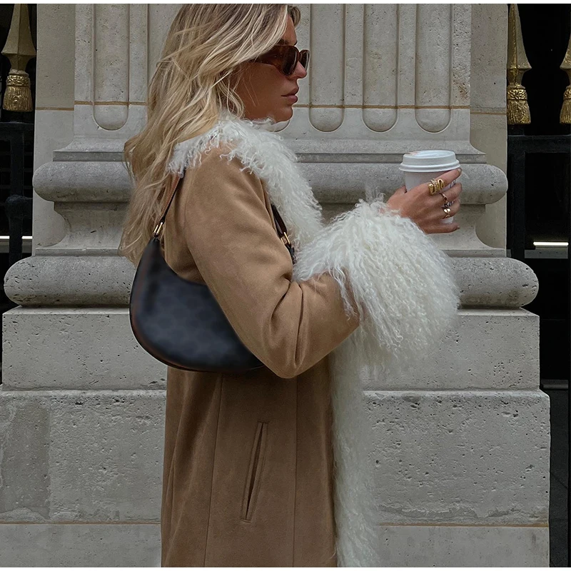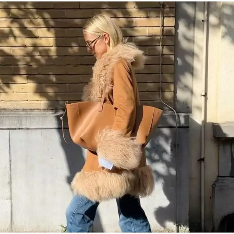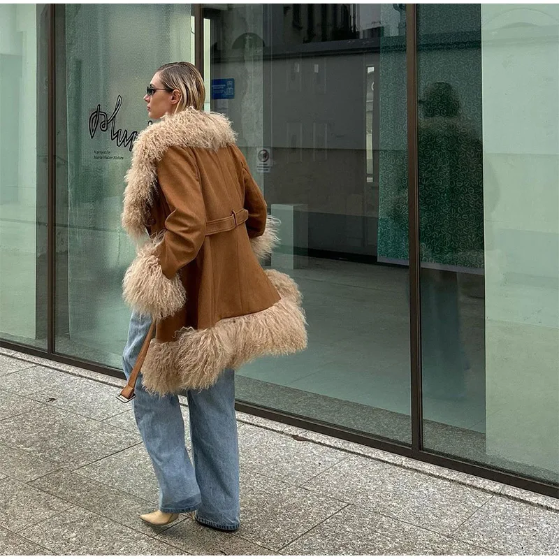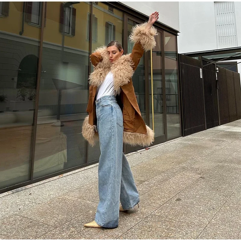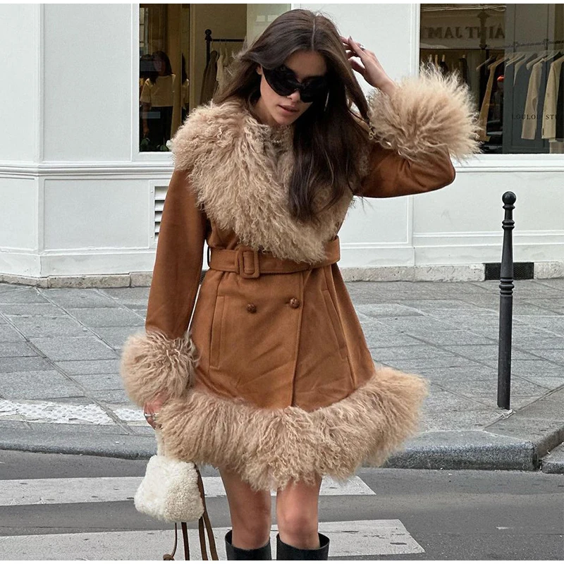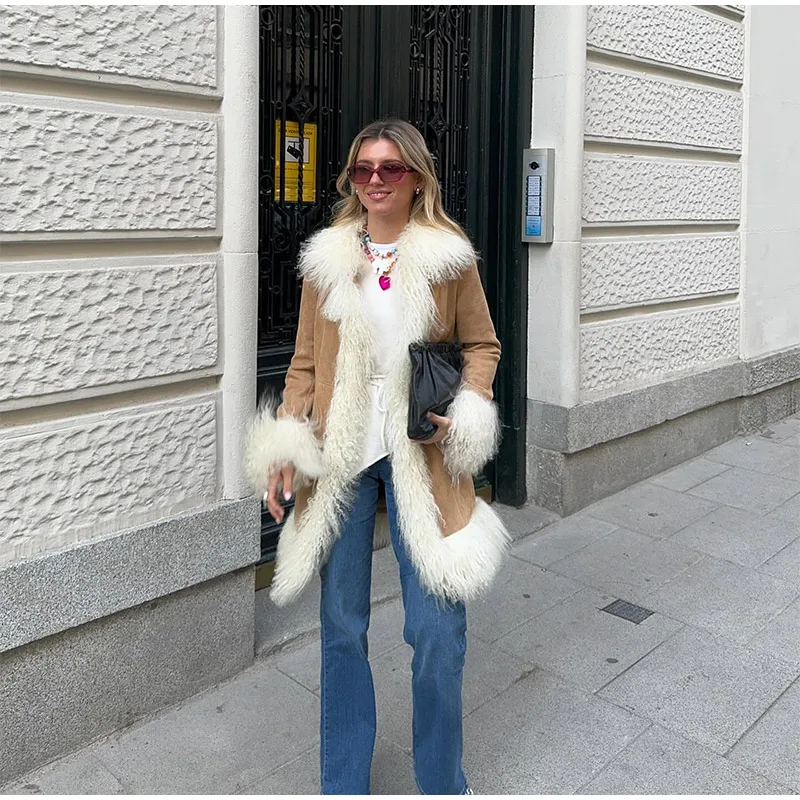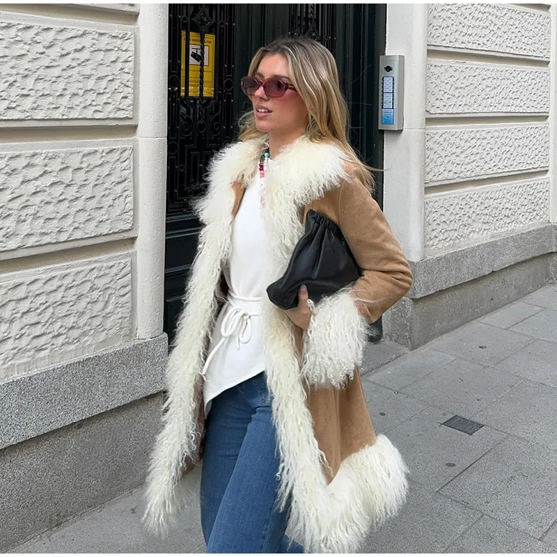 Vintage Furry Faux Fur Women Patchwork Coats Winter Long Sleeve Lapel Female Loose Jacket Casual Pockets Thick Warm Lady Outwear