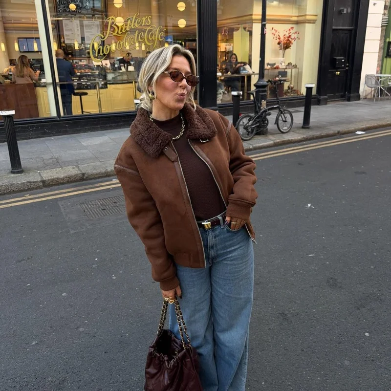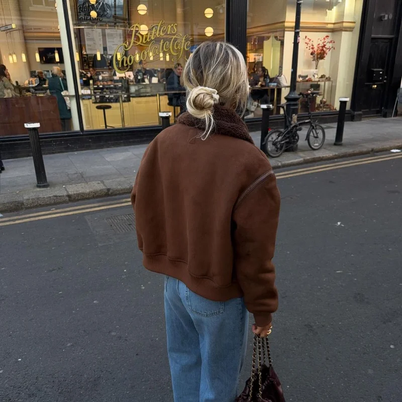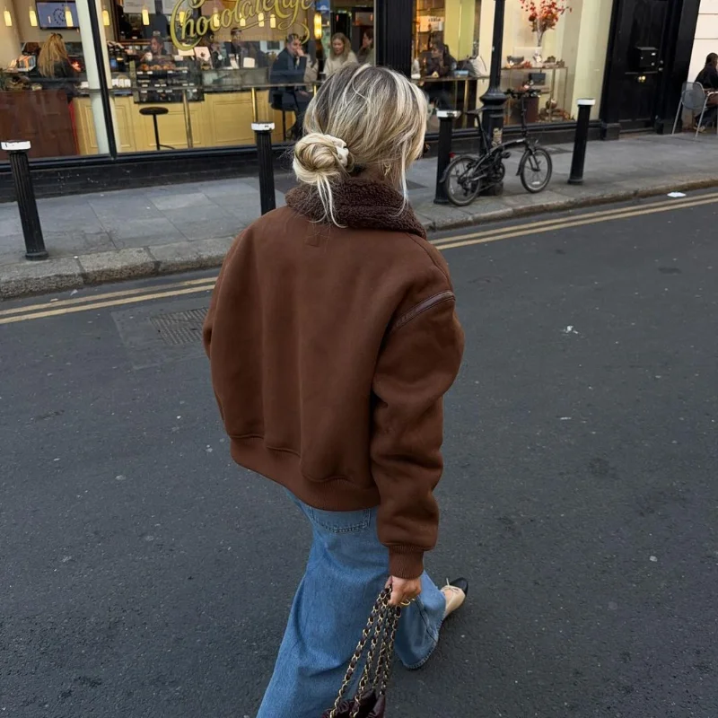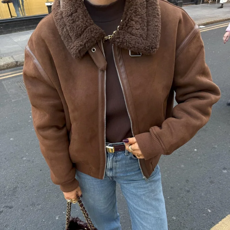 Vintage Coffee Lamb Wool Lapel Jackets For Women Chic Zipper Long Sleeved Thicken Warm Coats New Female Winter Streetwear