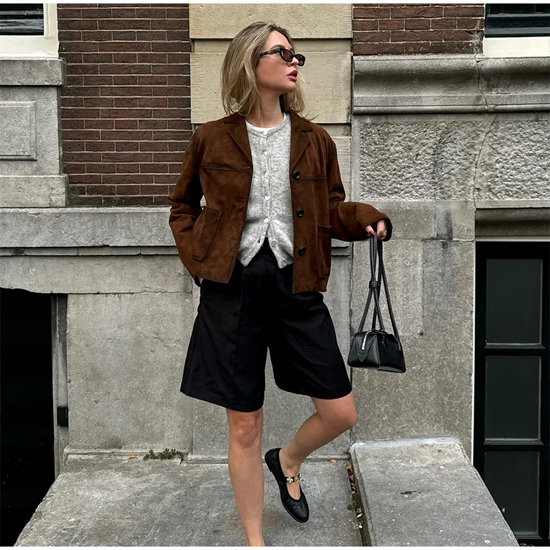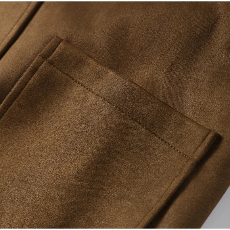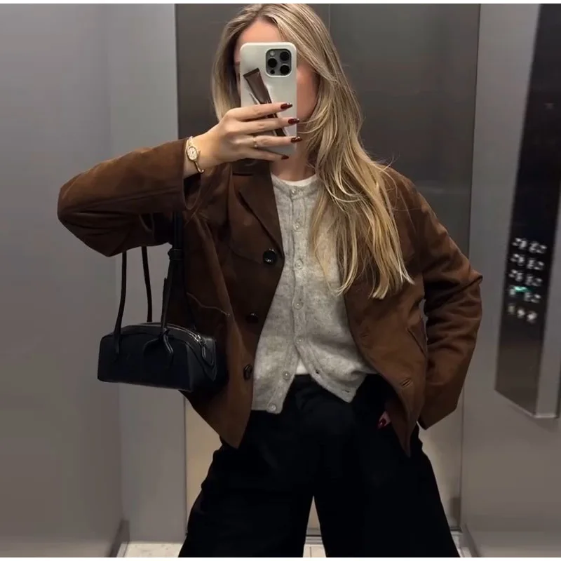 Retro Suede Female Blazer Jacket Chic Lapel Single Breasted Long Sleeve Lady Short Coat Autumn Winter Pockets Lady Outwear