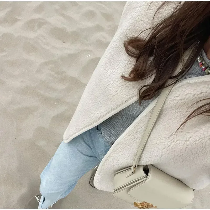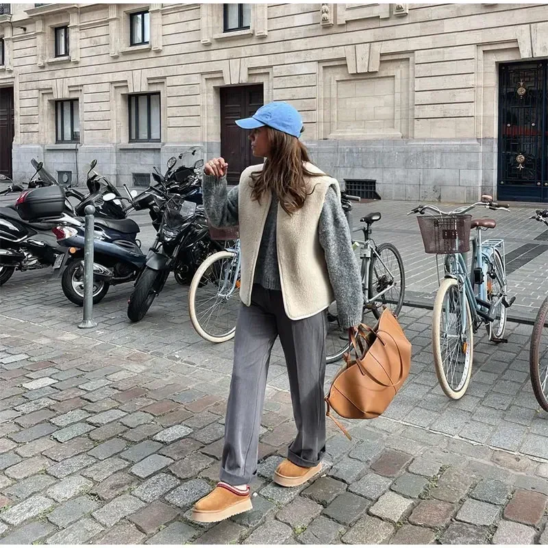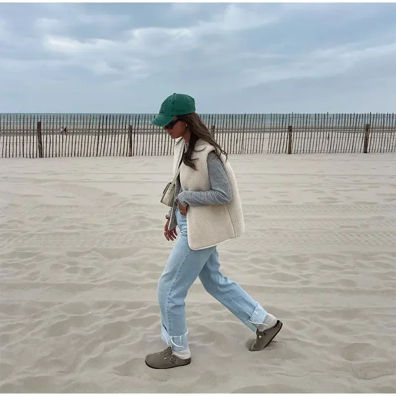 New Solid Lamb Wool Single Breasted Vest For Women Casual V Neck Sleeveless Warm Waistcoat Autumn High Street Outerwear Y2K