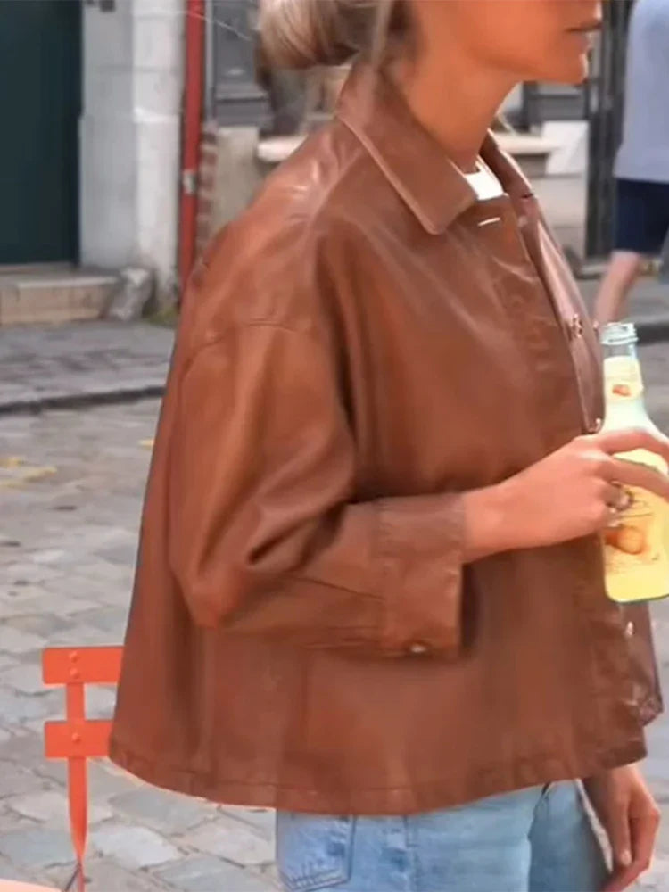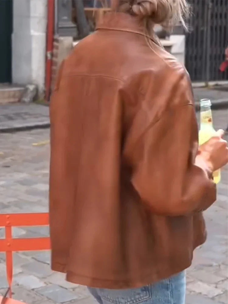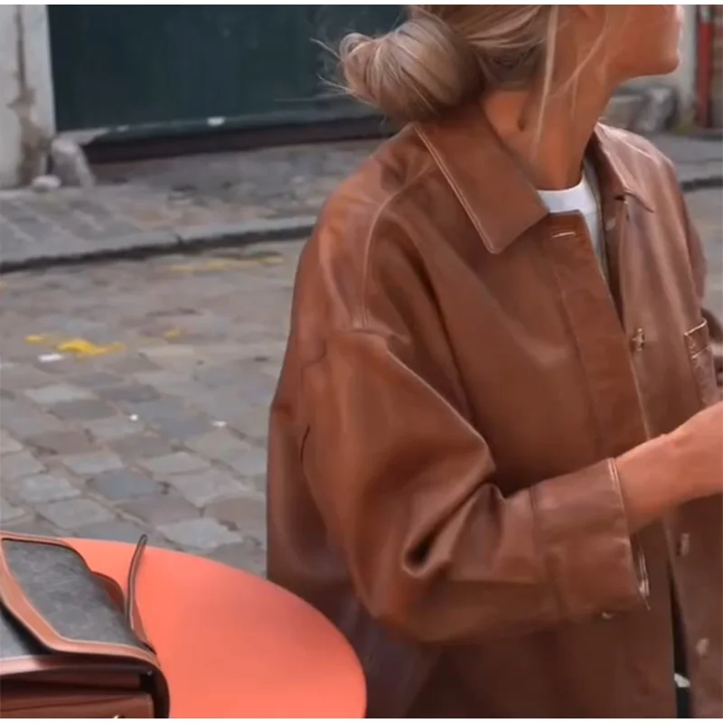 Casual Solid Women Leather Jackets Turn Down Collar Single Breasted Pockets Female Loose Coats Autumn New Chic Lady Outwear