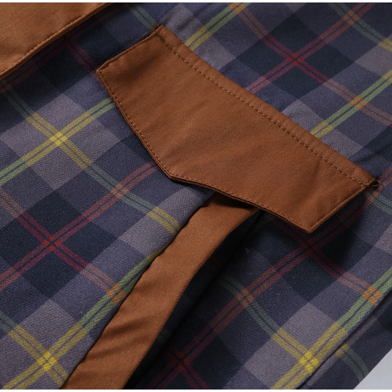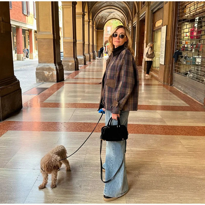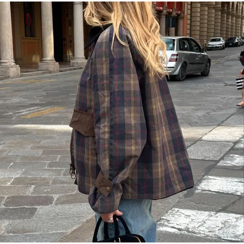 Vintage Plaid Printed Women Jacket Patchwork Turn Down Collar Single Breasted Female Coat Autumn Long Sleeve Zipper Outwear