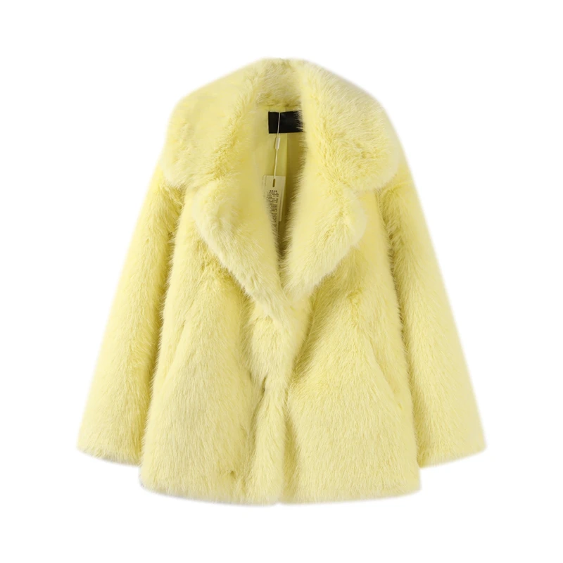 Luxury Thick Warm Women Coats Turn-down Collar Faux Fur Pocket Jackets Outwears Autumn Winter Soft Fluffy Ladies Overcoat