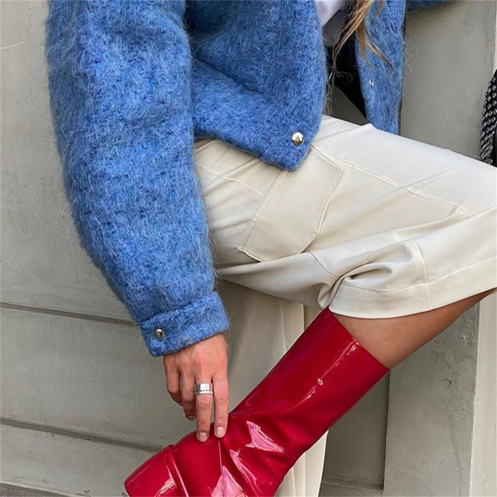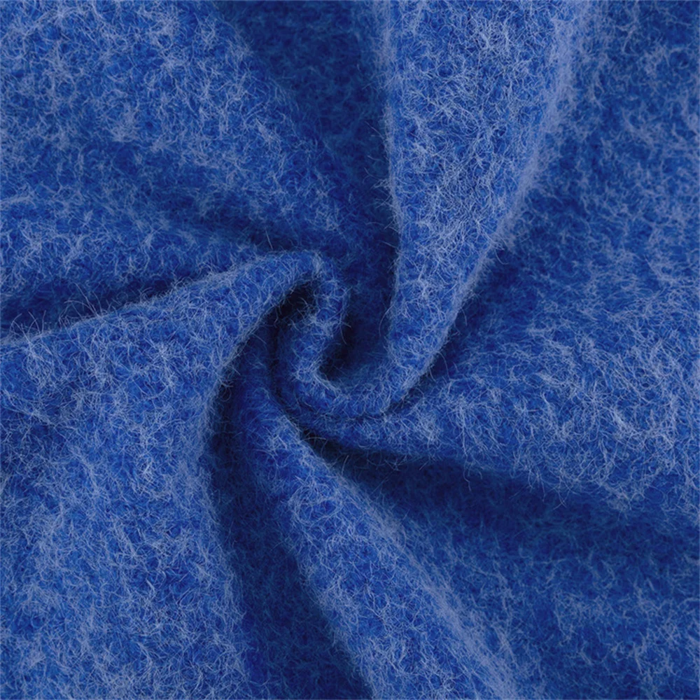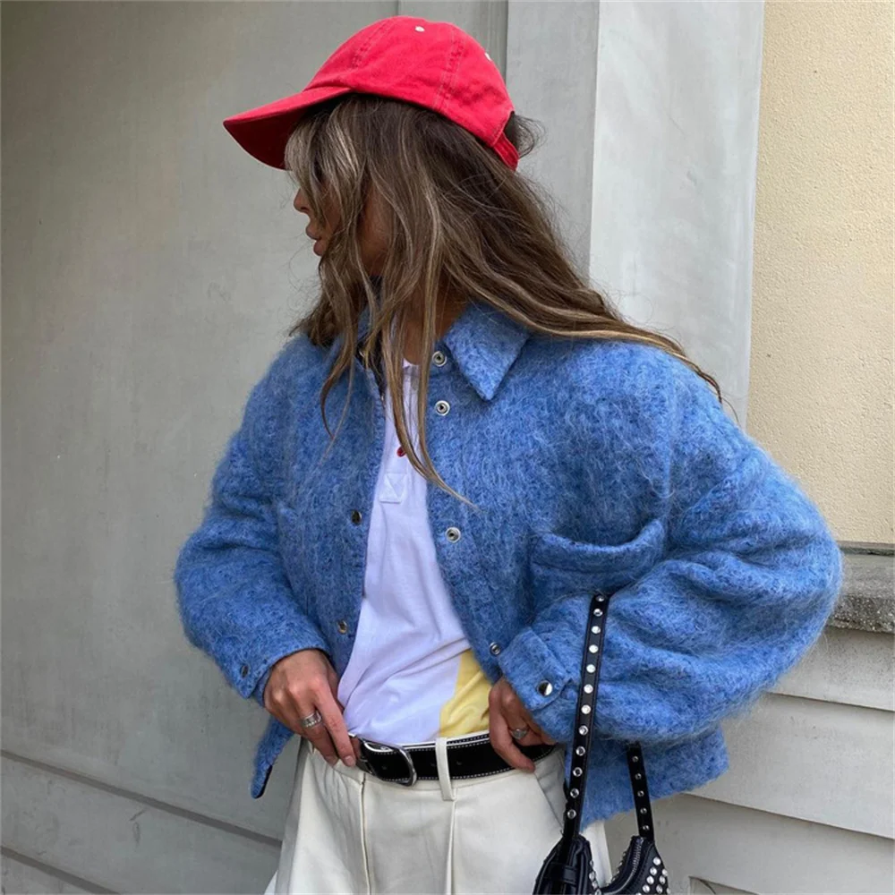Autumn Winter Blue Short Woolen Jacket for Women Lapel Long Sleeve Button Up Warm Coat Female Casual Streetwear Tops