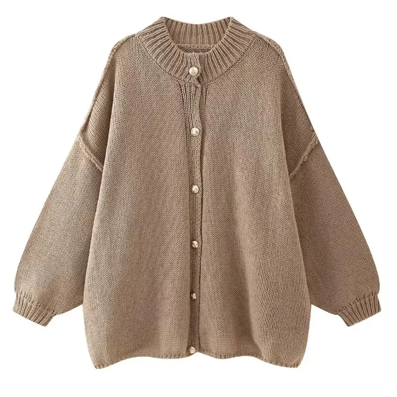 Loose Knitted Sweater Cardigan Women 2024 Autumn Single Breasted O Neck Fashion Top Office Female Casual Coat Female Outfit Top