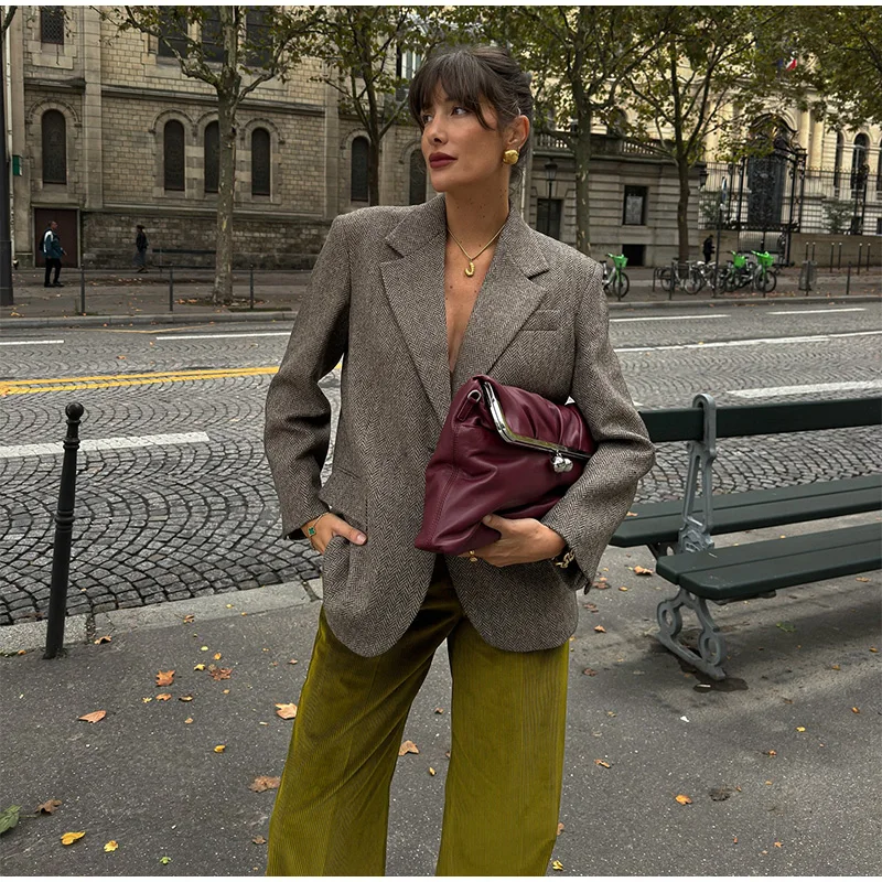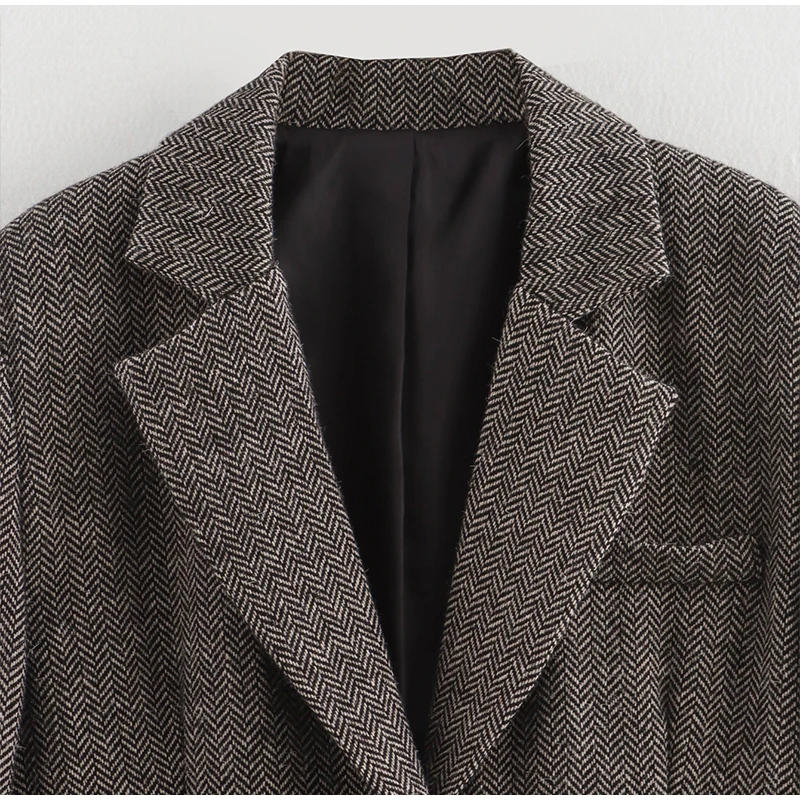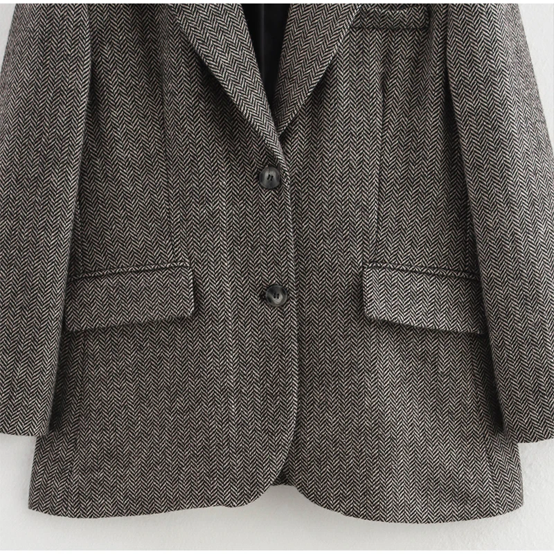 Herringbone Wool Tweed Women Suit Blazer New Single Breasted Lapel Jacket Autumn Winter Formal Fashion Coat Lady Outwears