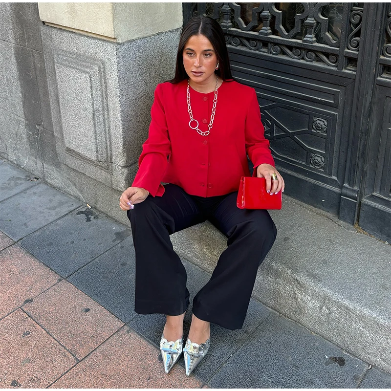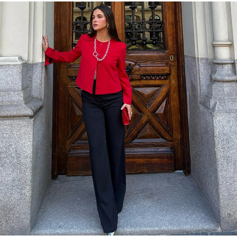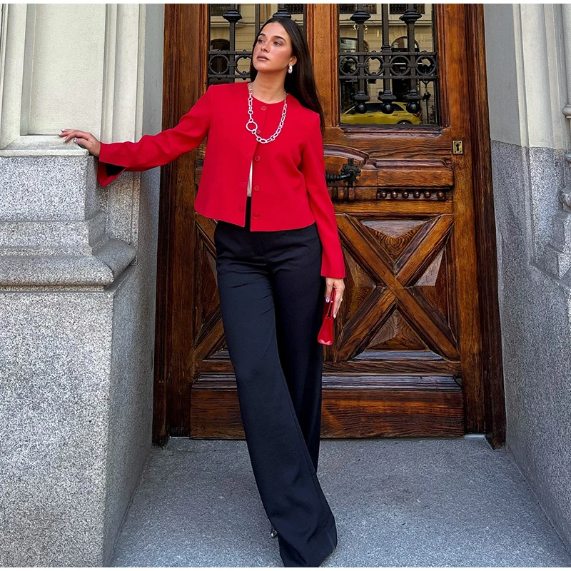Elegant Slim Fit Women's Jacket Round Neck Single Breasted Long Sleeve Short Jackets Fashion Solid Color Casual Coat Outerwears