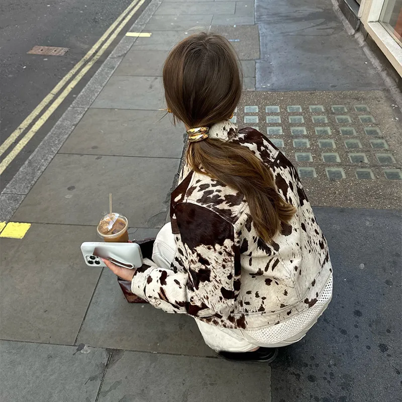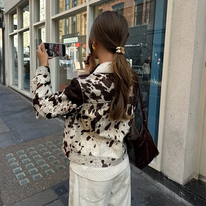 Chic Contrast Color Printed Demi-season Jacket For Women Fashion Lapel Single Breasted Lapel Coat 2024 New Lady High Streetwear