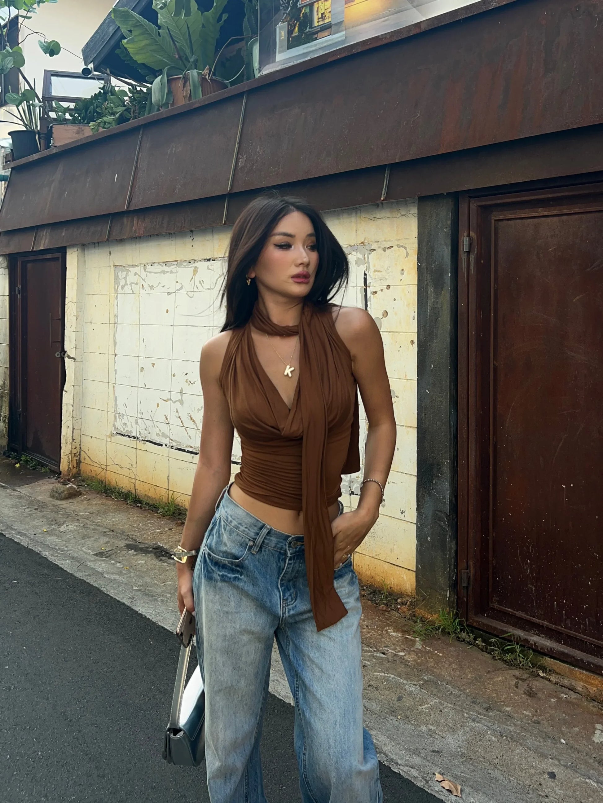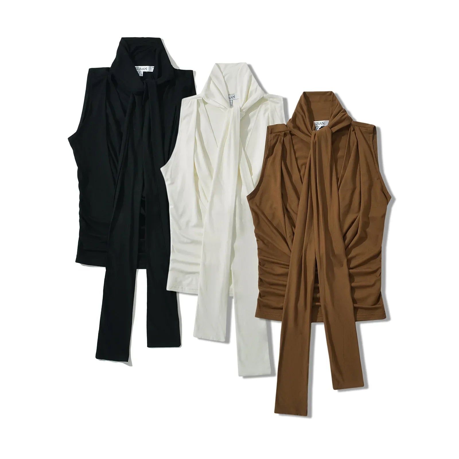 Women Sleeveless Tie Neck Plain Top JERSEY TOP WITH BOW Ruched V-neck Knot Detail Tank Top