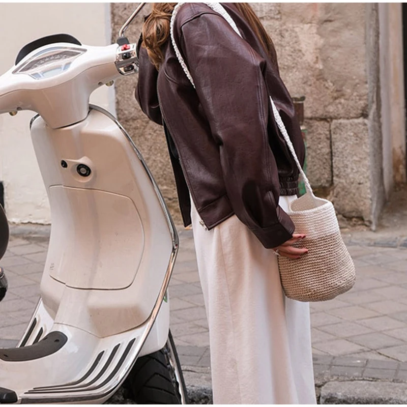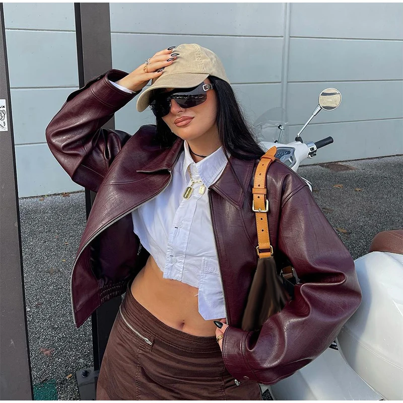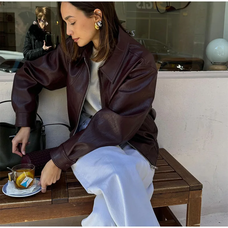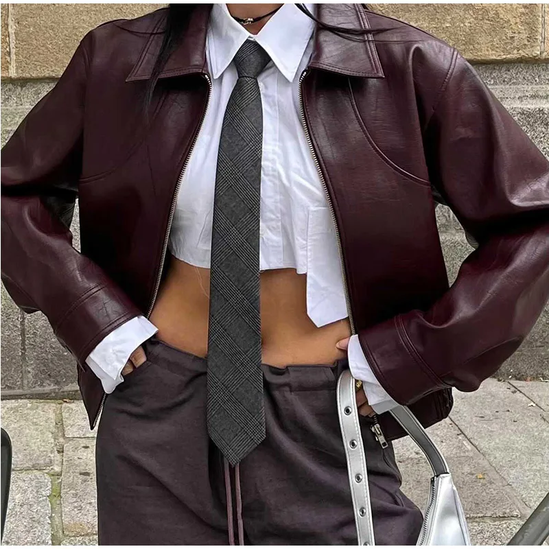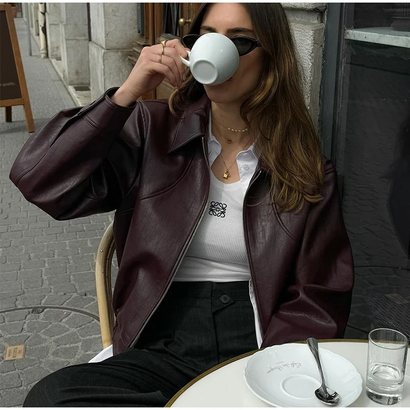 Solid Zipper Leather Jacket For Women Casual Turn-down Collar Long Sleeve Female Coat 2024 New Autumn Casual Ladies Outerwears