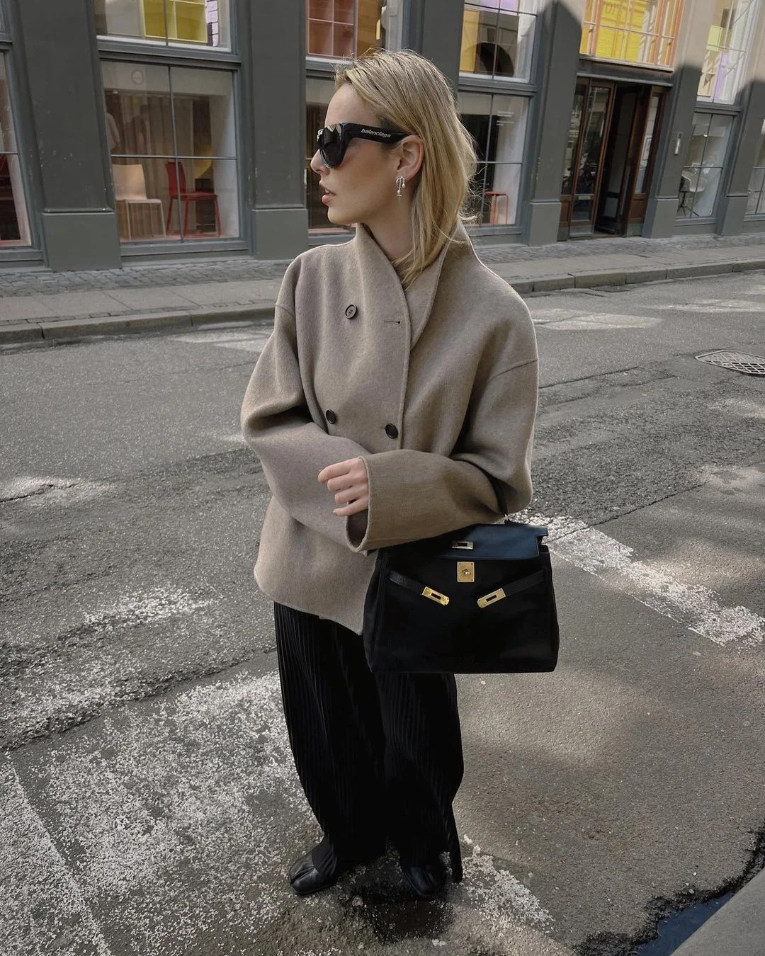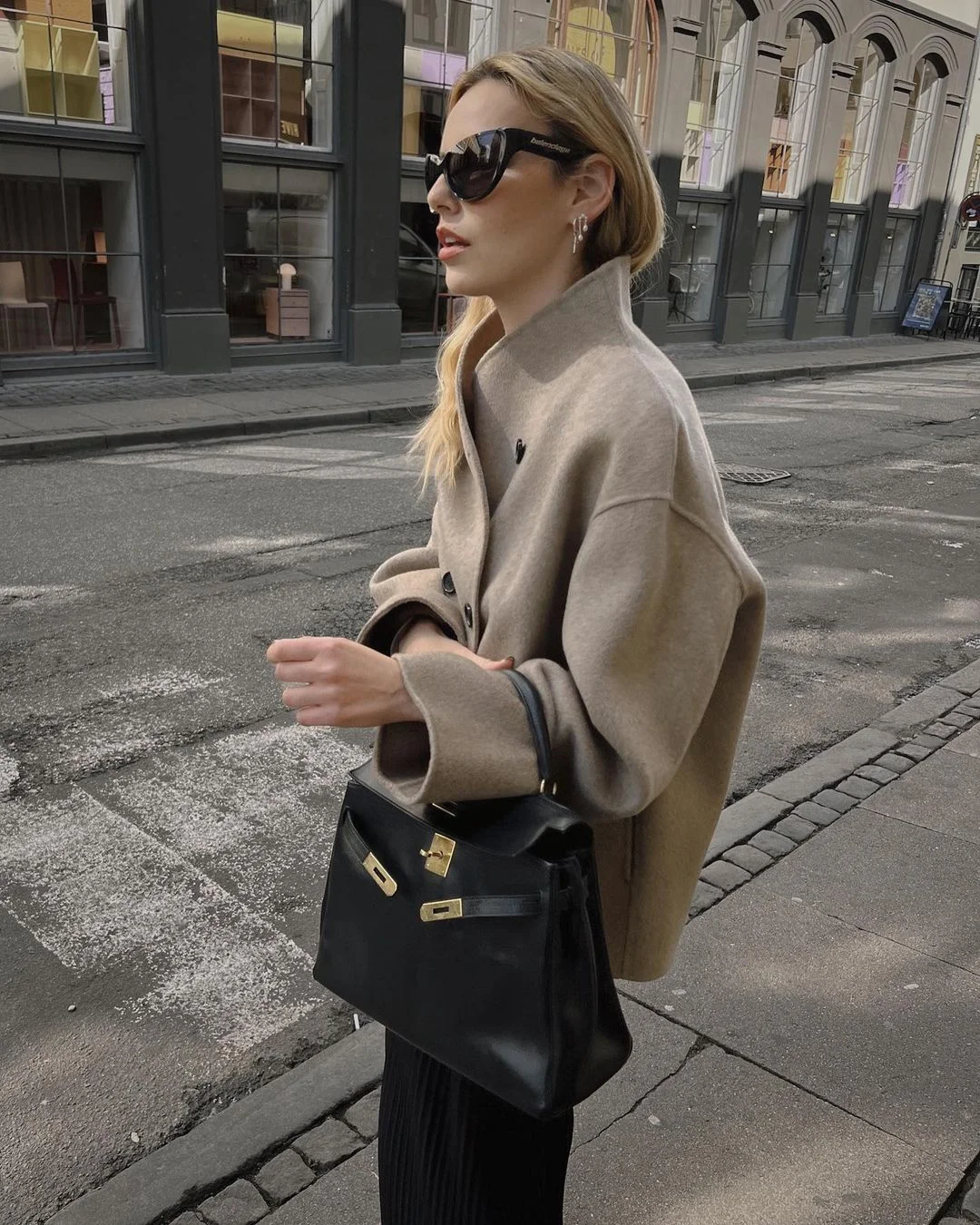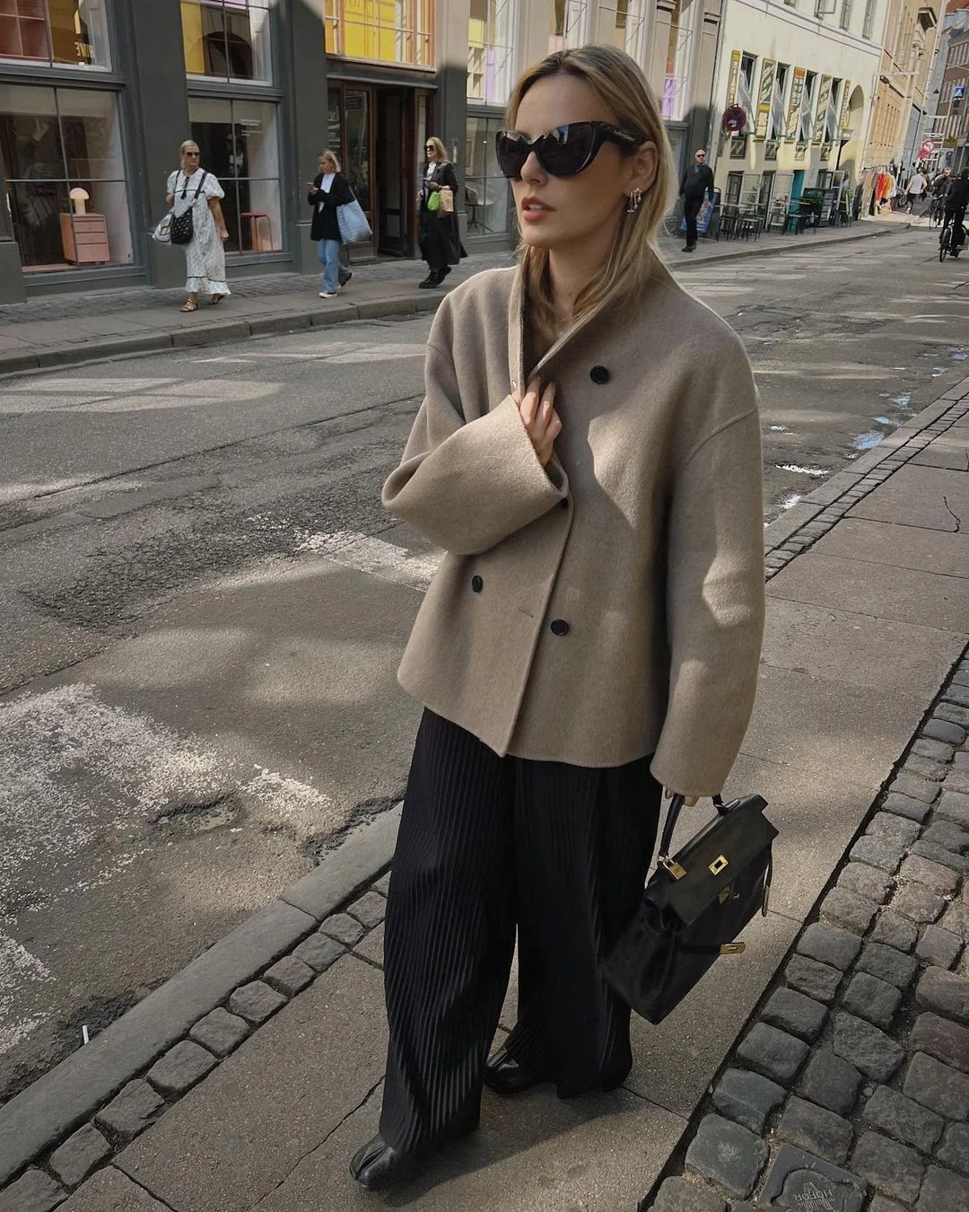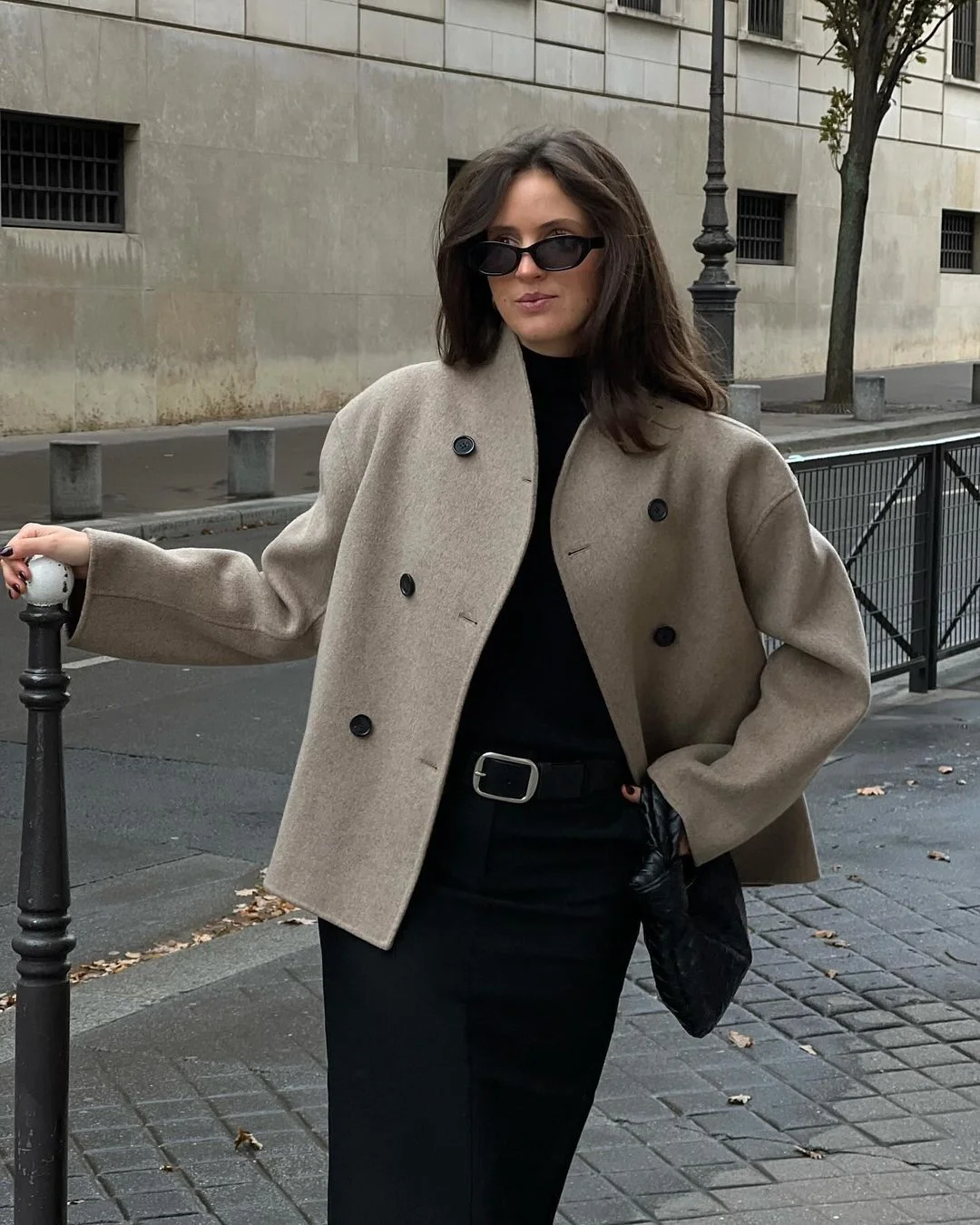 Elegant Wool Women's Coats Loose Casual Double Breasted Stand Collar Short Jacket 2024 Fall Winter Coat Female Commute Outerwear