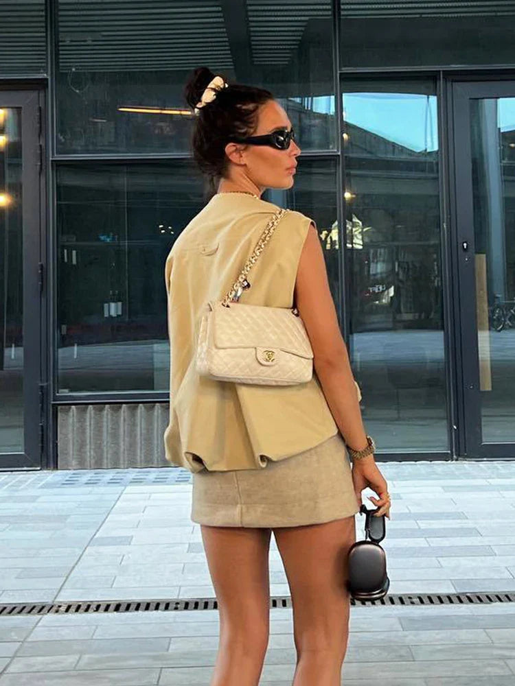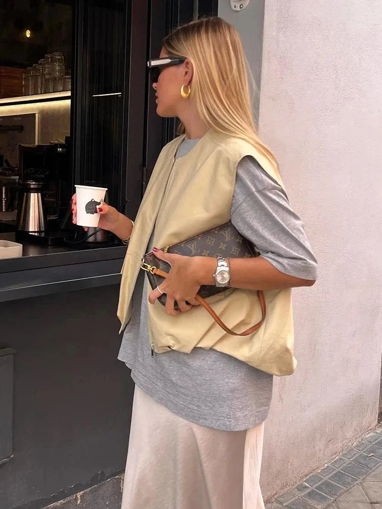 Padded Beige Waistcoat Folds Winter Sleeveless Vest Coat Turtleneck Pockets Zipper Autumn Thick Warm Parka Jacket