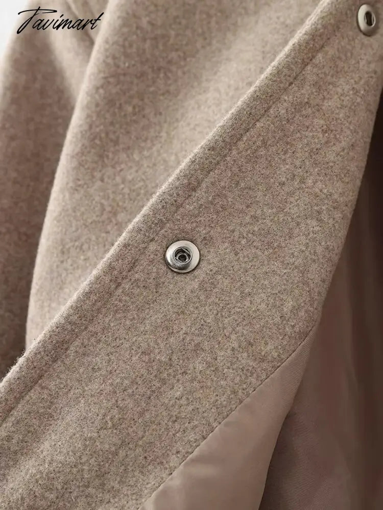TAVIMART Pockets Cropped Jacket Woman Spring Streetwear Turn Down Collar Long Sleeve Khaki Short Coat Fashion New Chic Outerwear Tops