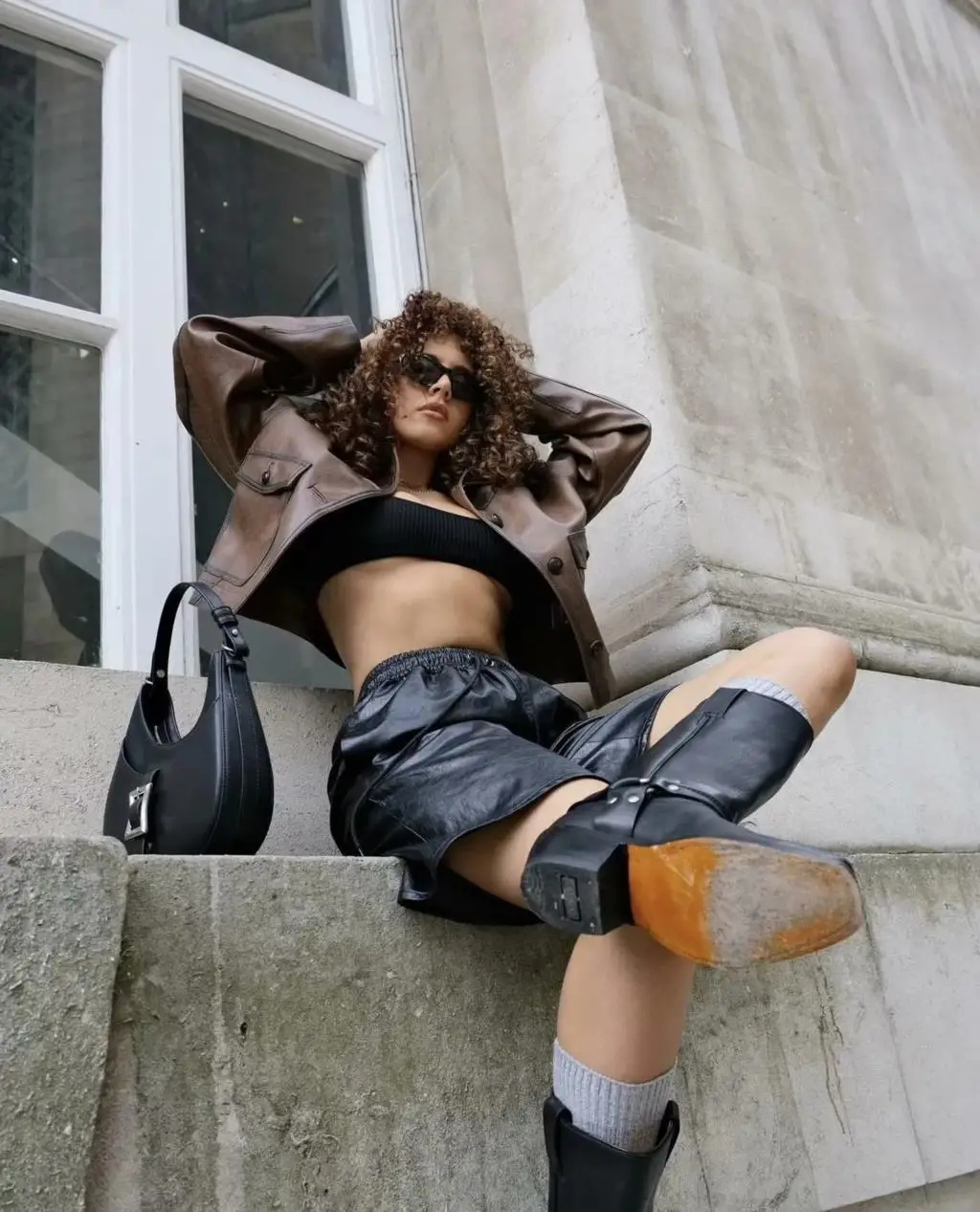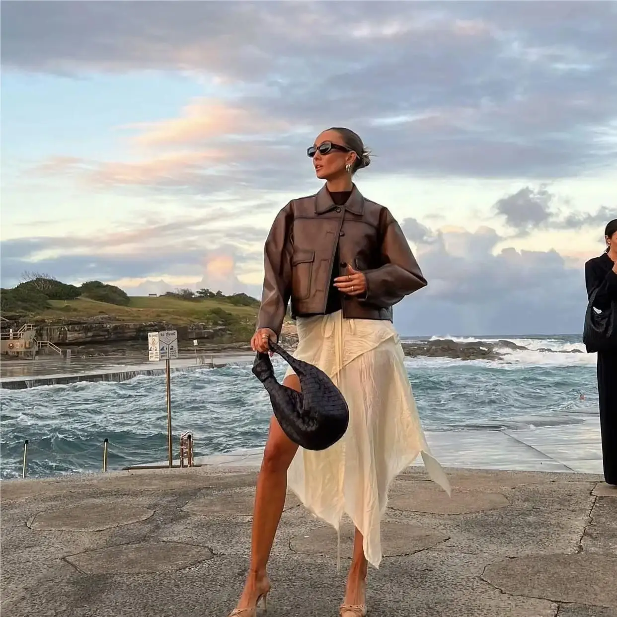 Model Number: black leather jacket women vintage