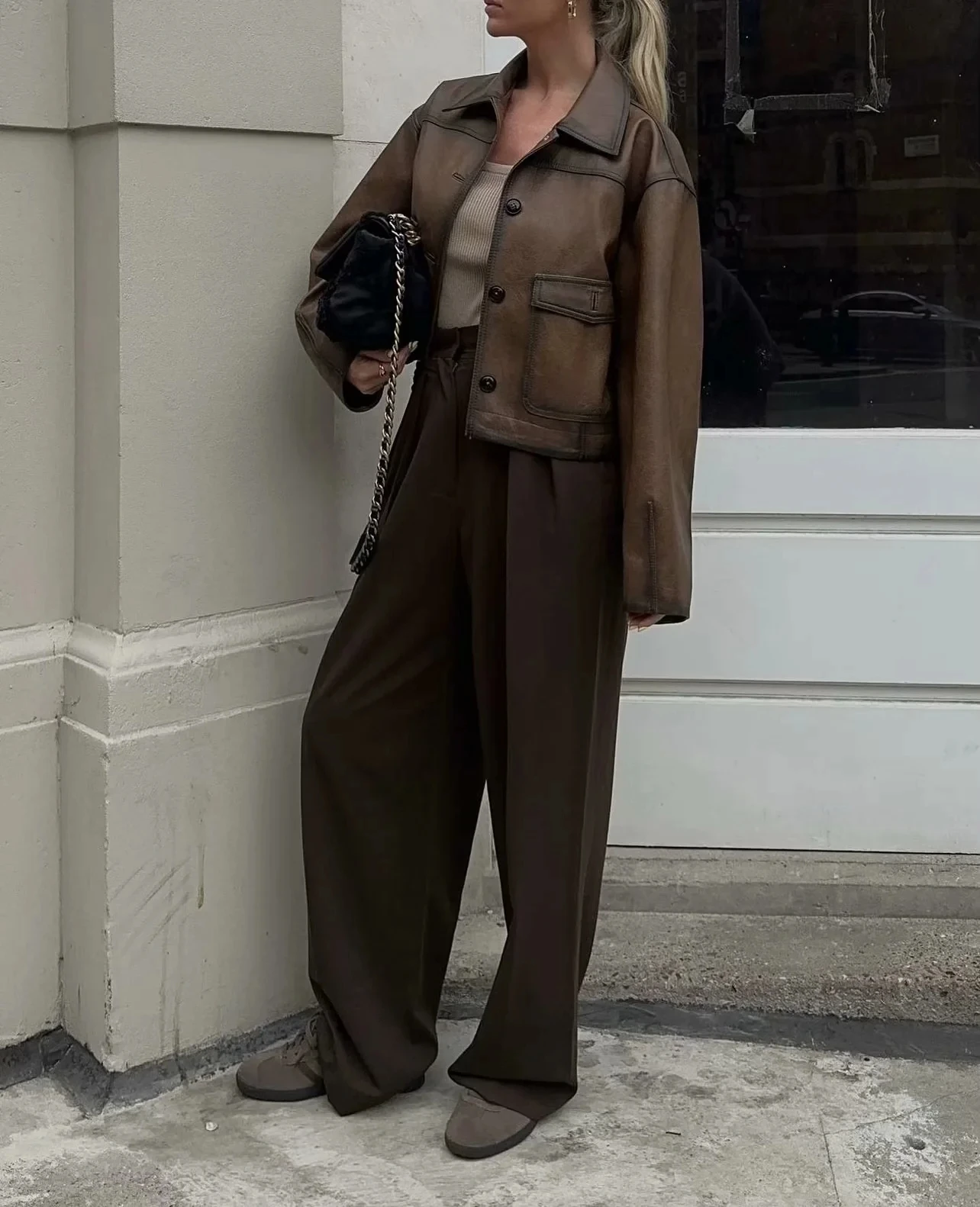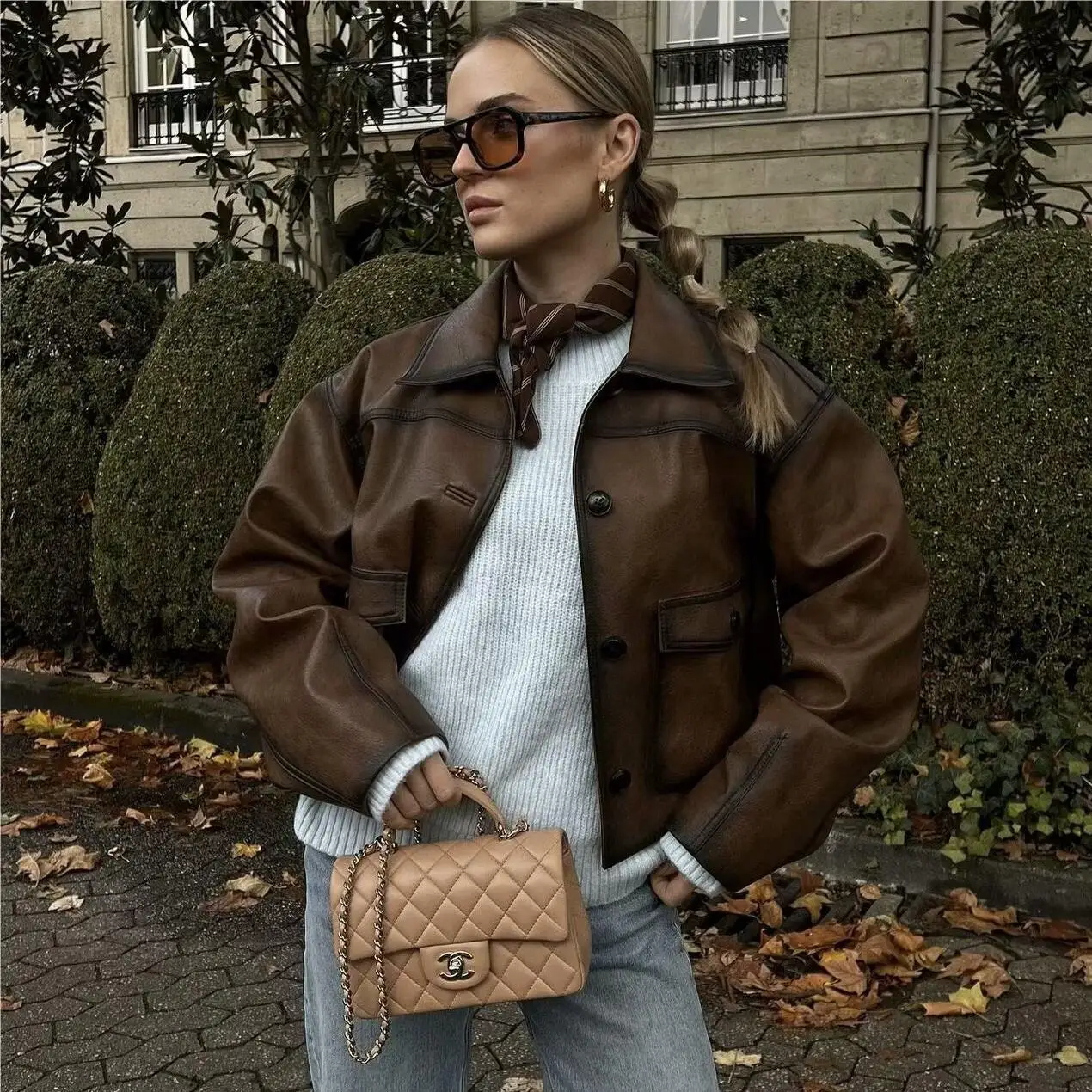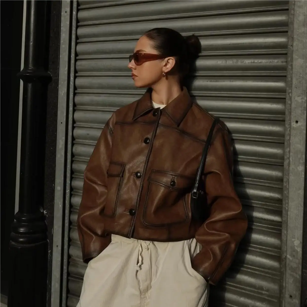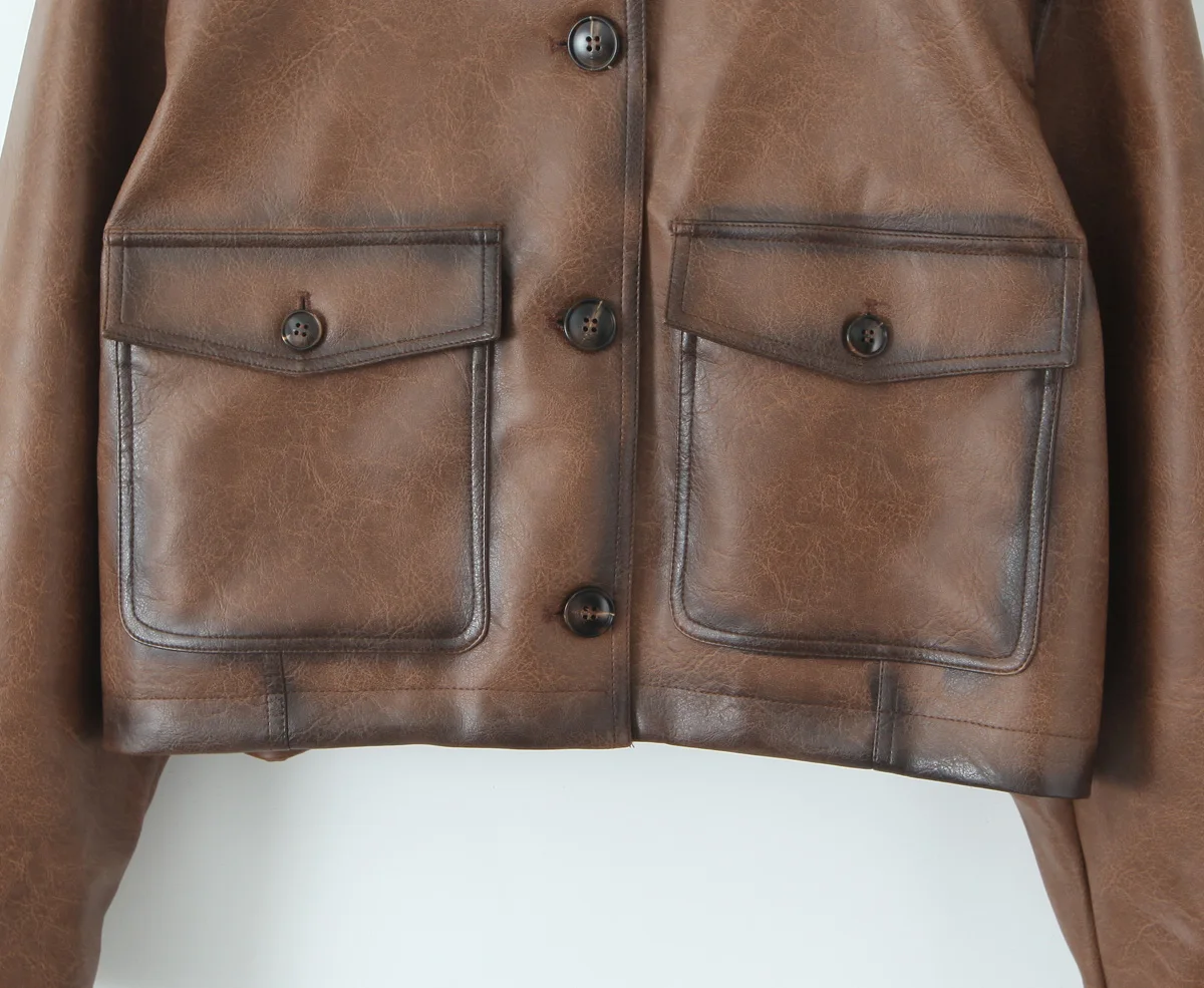 TAVIMART Faux leather jacket women Winter vintage clothes jacket women PU leather jackets y2k fashion brown jacket biker coats luxury