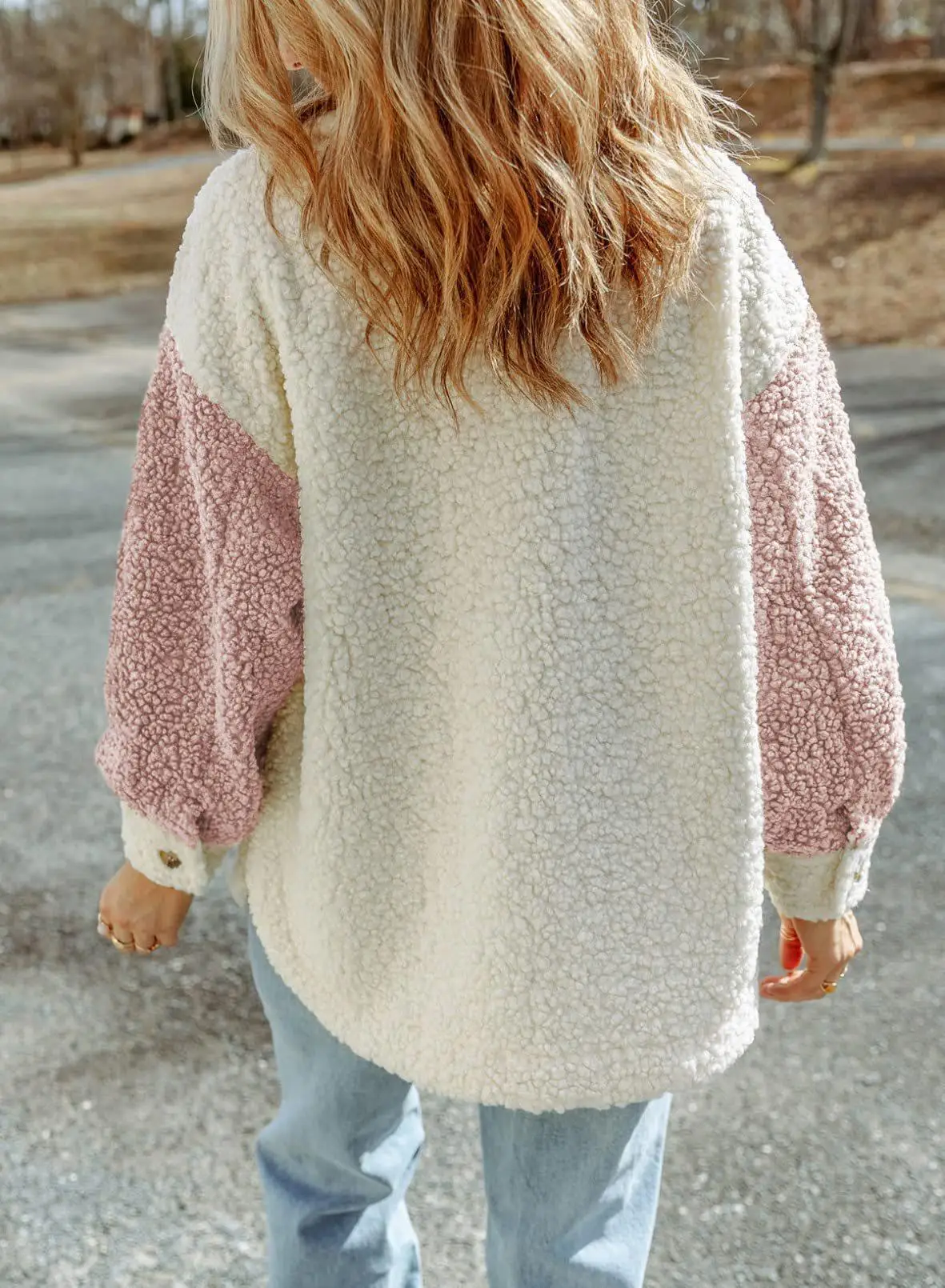Tavimart Casual Autumn Winter Women Plush Jackets Coat Elegant Long Sleeve Button Fashion Outwear Turn Down Collar Loose Coats