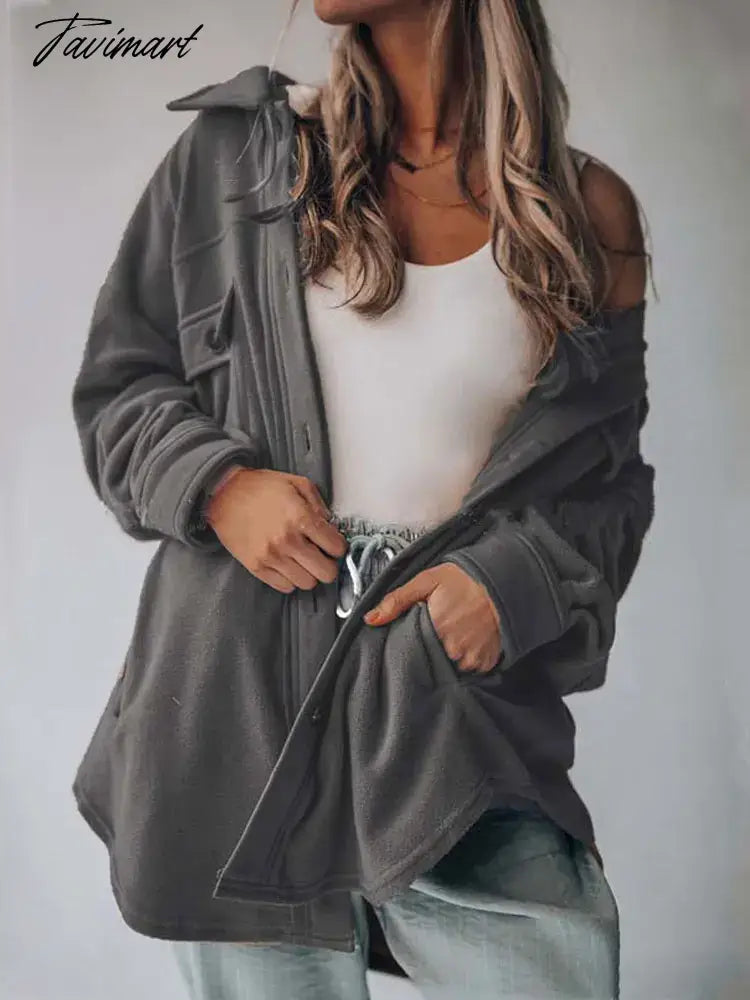 Tavimart Autumn Long Jacket Women Winter Plush Coat Shirt Jacket Female Button Fleece Coat Jackets For Women