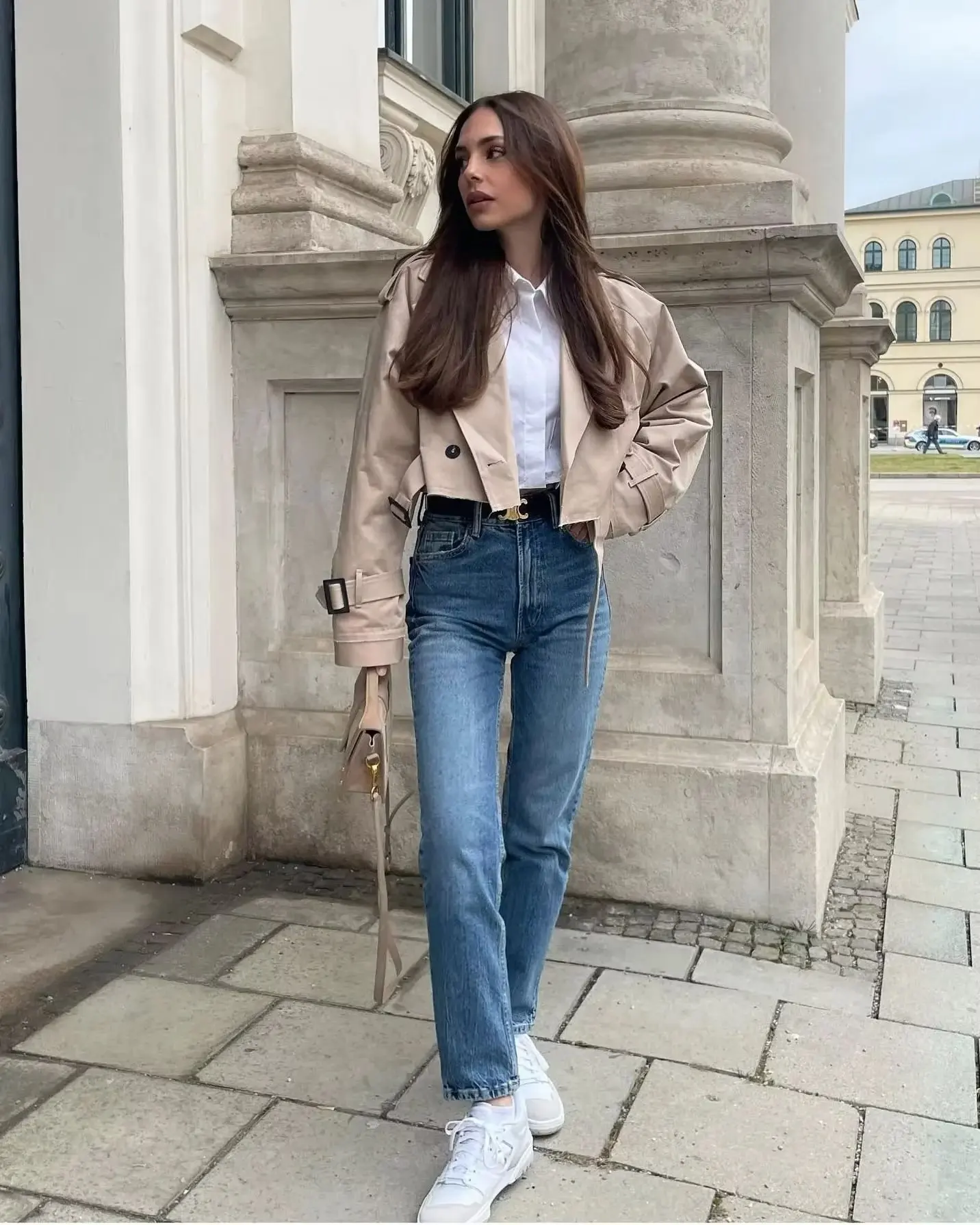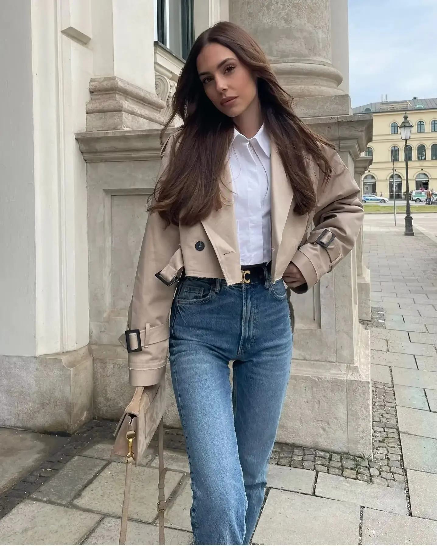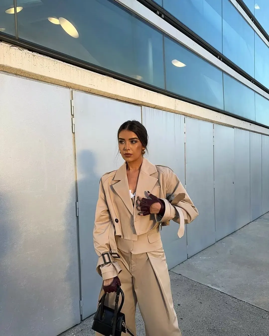 Tavimart Y2K New European and American Style Women's Short Cut Windbreaker Belt Coat Jacket Women