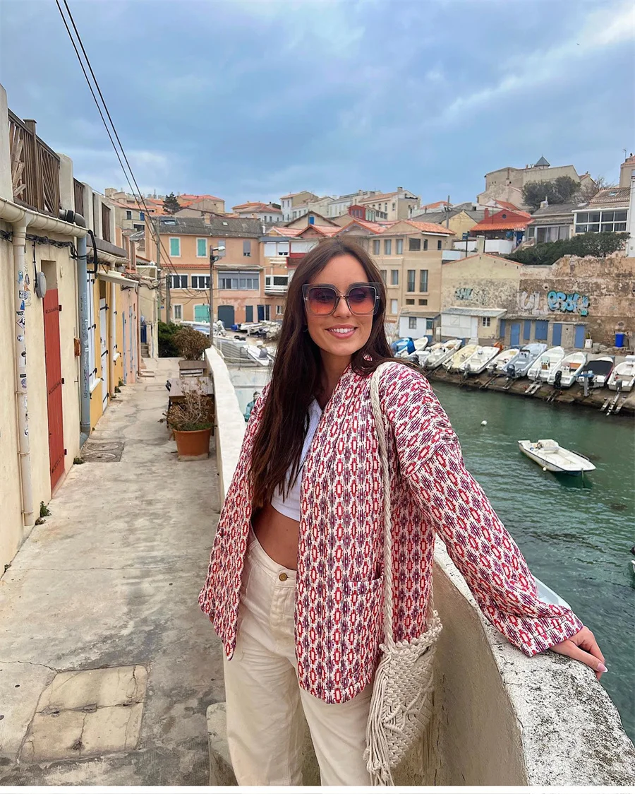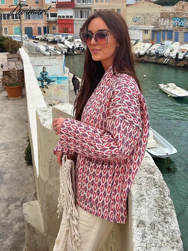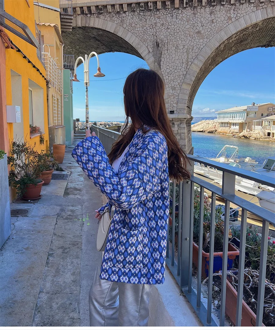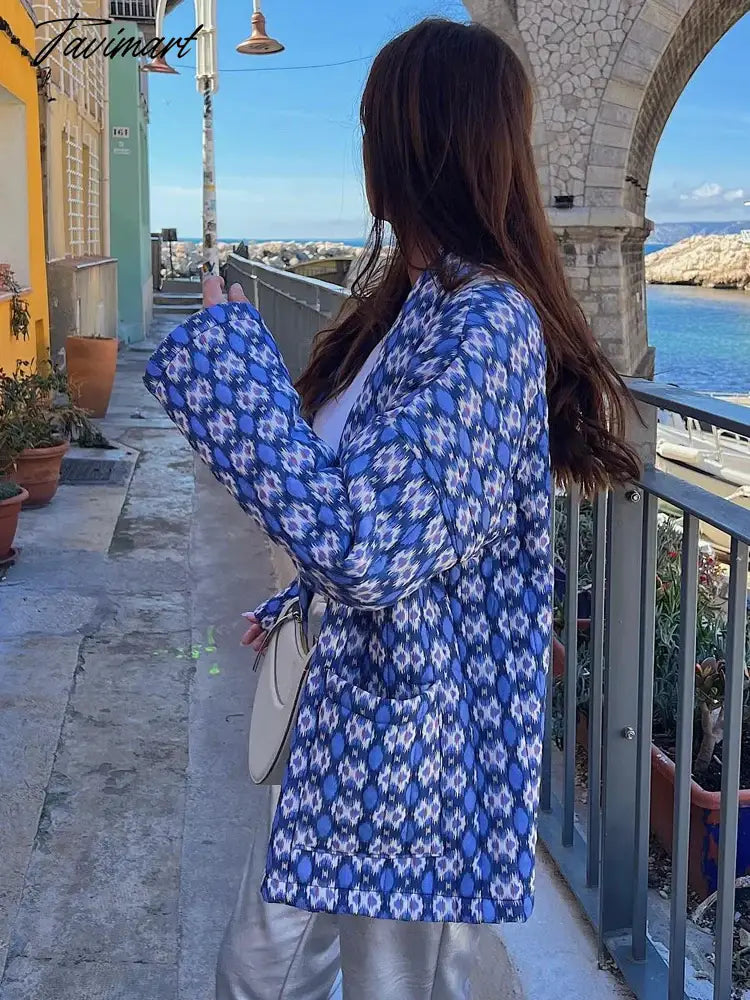 Tavimart Vintage Printed Loose Coat For Women Fashion Floral Thick Warm Cotton Jackets Autumn Chic Female Long Sleeve Commuter Jumpers