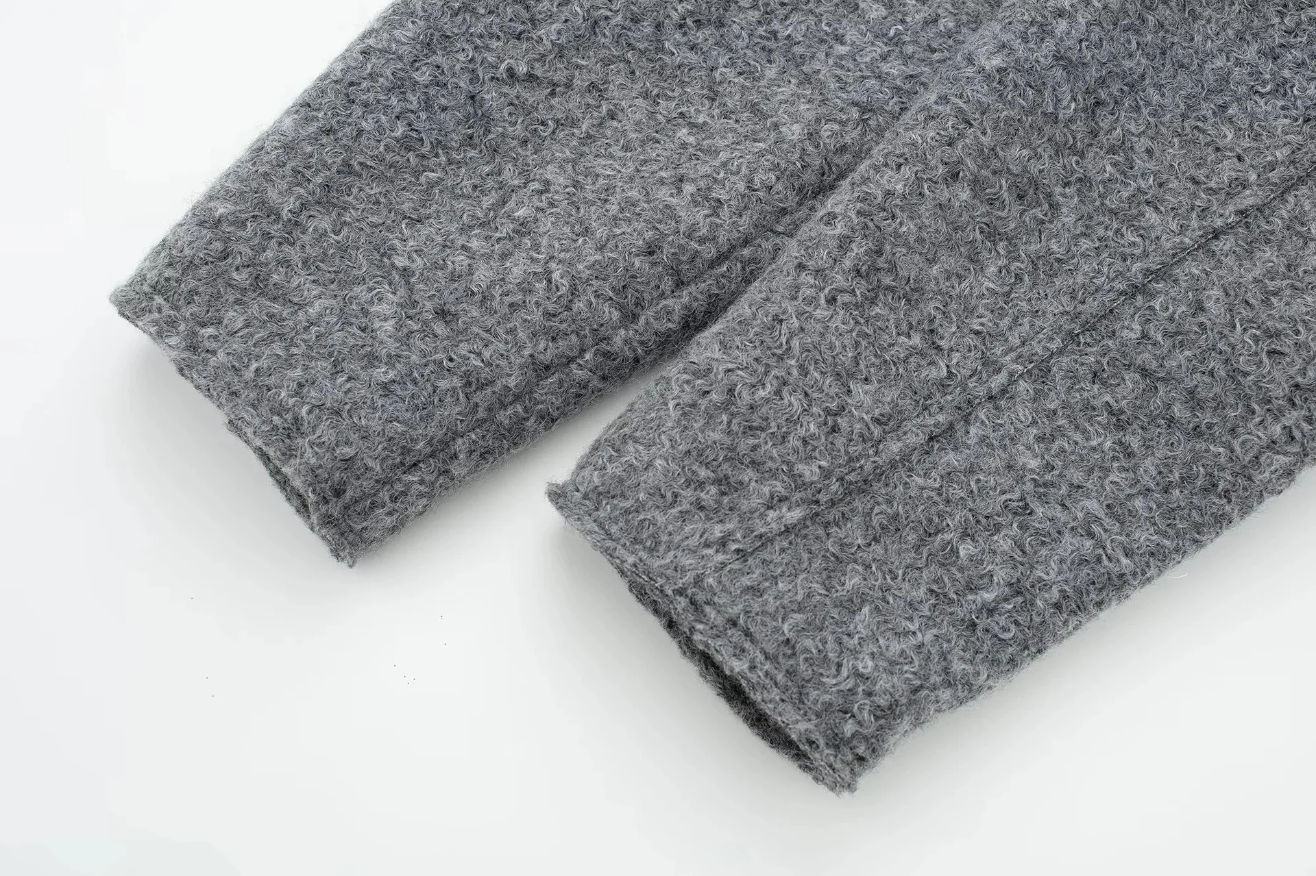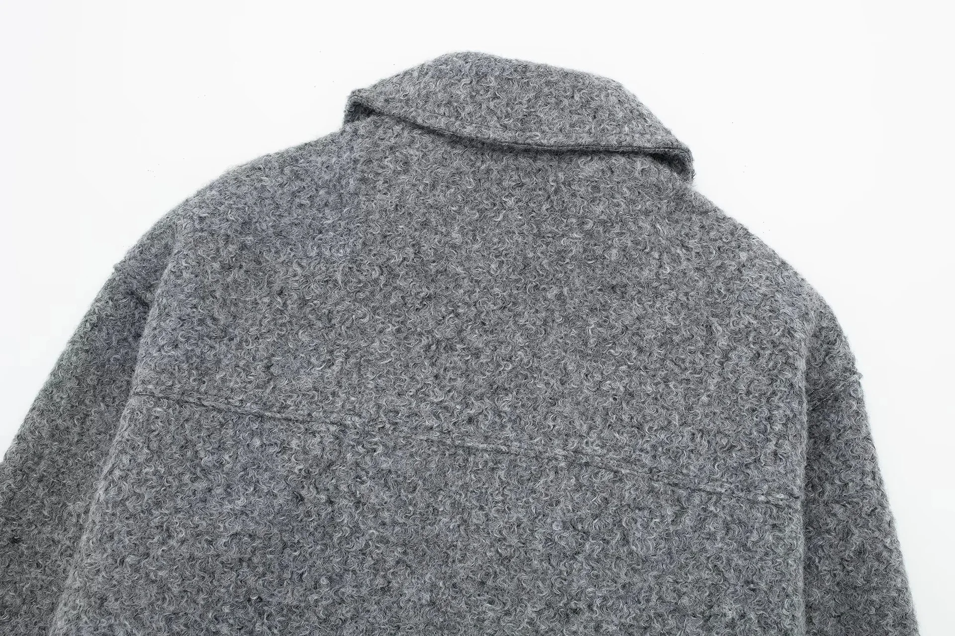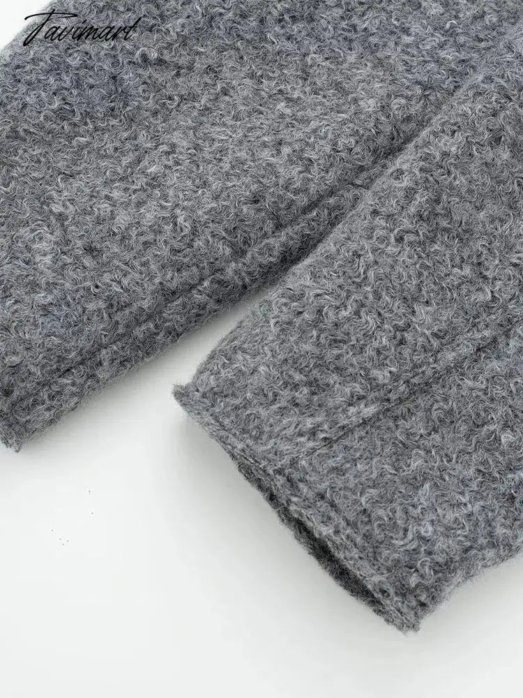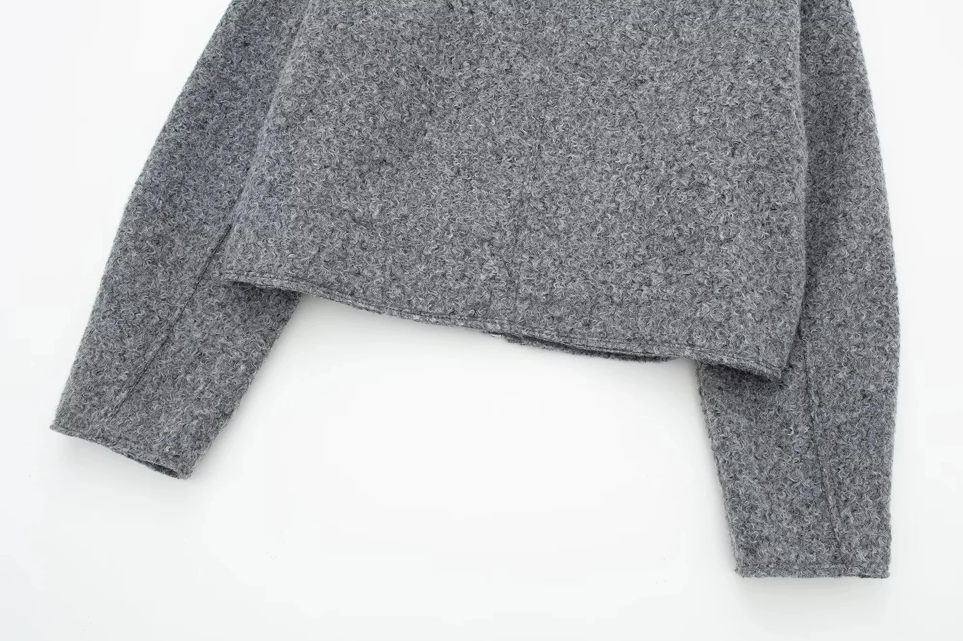 Tavimart Gray Jacket Women Fashion Cropped Coats Autumn Elegant Lapel Zipper Jackets Ladies Casual Wool Blend Outerwear Female Chaquetas