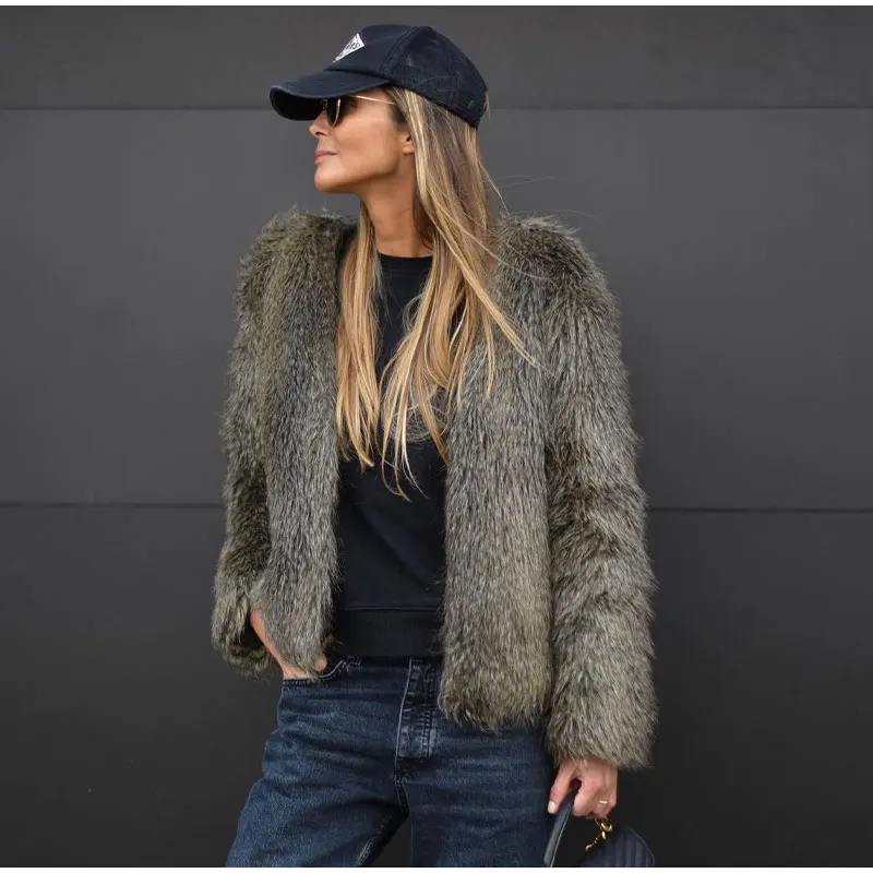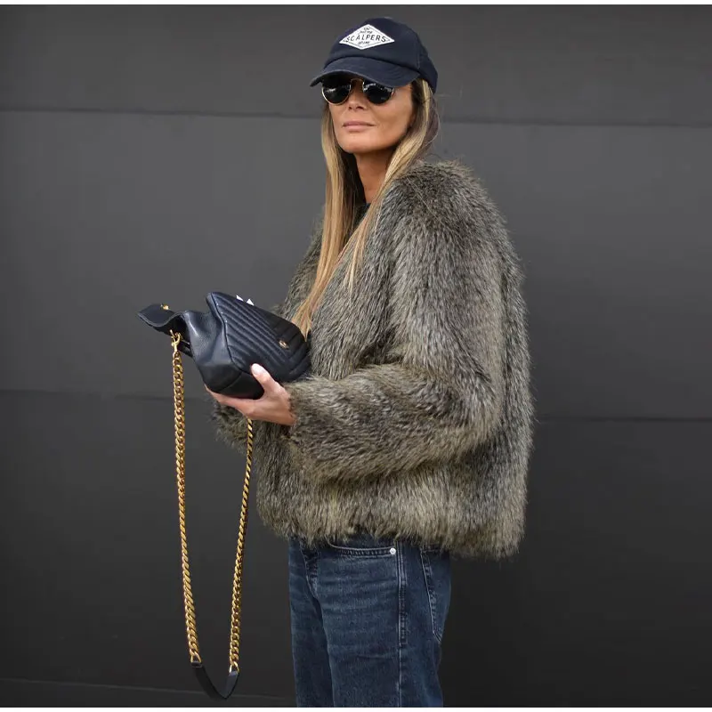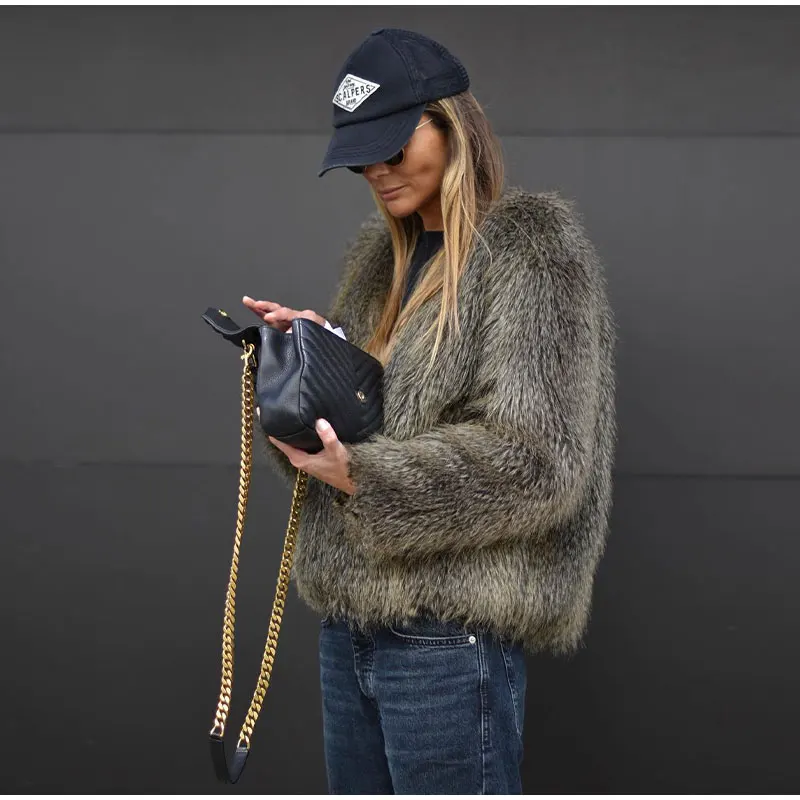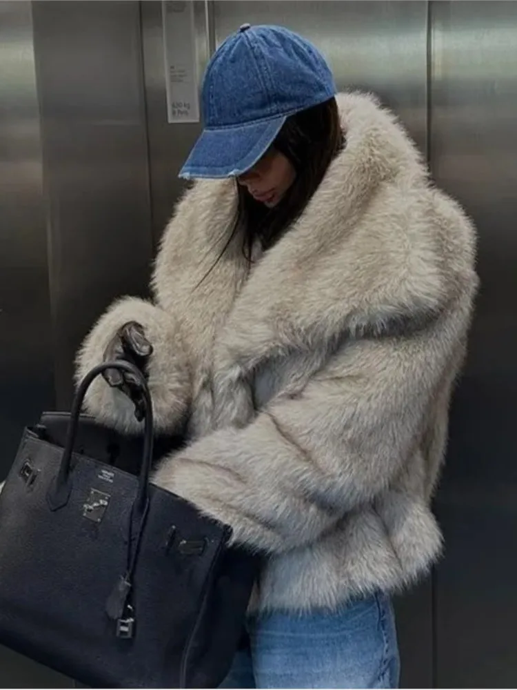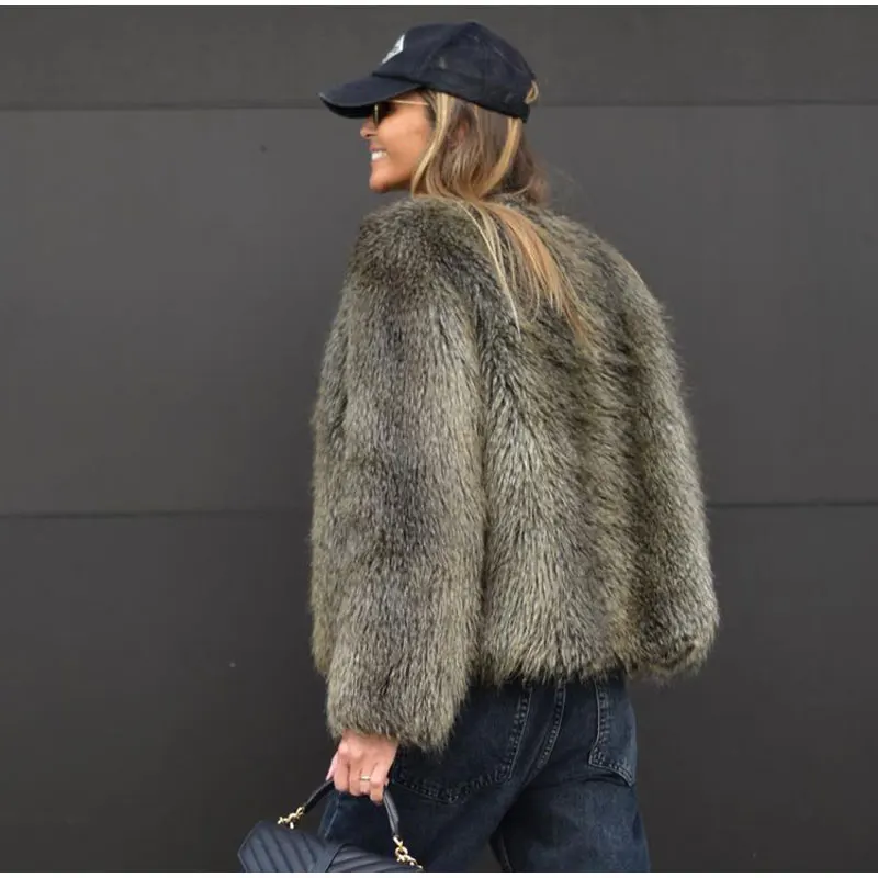 TAVIMART Fashion Thicken Short Faux Fur Jacket For Women Chic V Neck Long Sleeved Plush Cardigan Winter Female Elegant Warm Coat